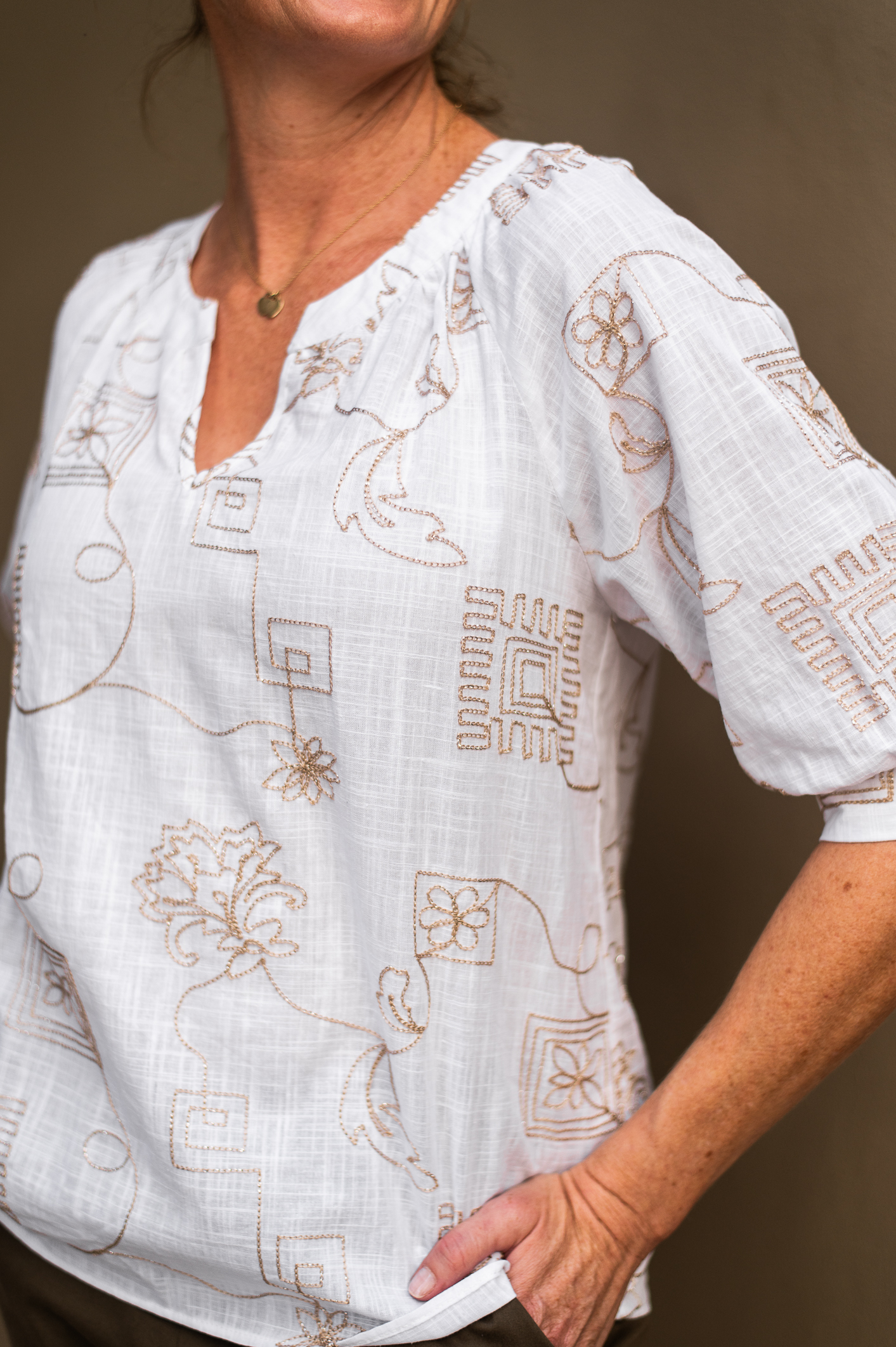 Boho” inspired, “holiday” and “coastal” style clothing using premium quality; developed for more mature, sophisticated women, featuring embroidery and embellishment as the prime focus.