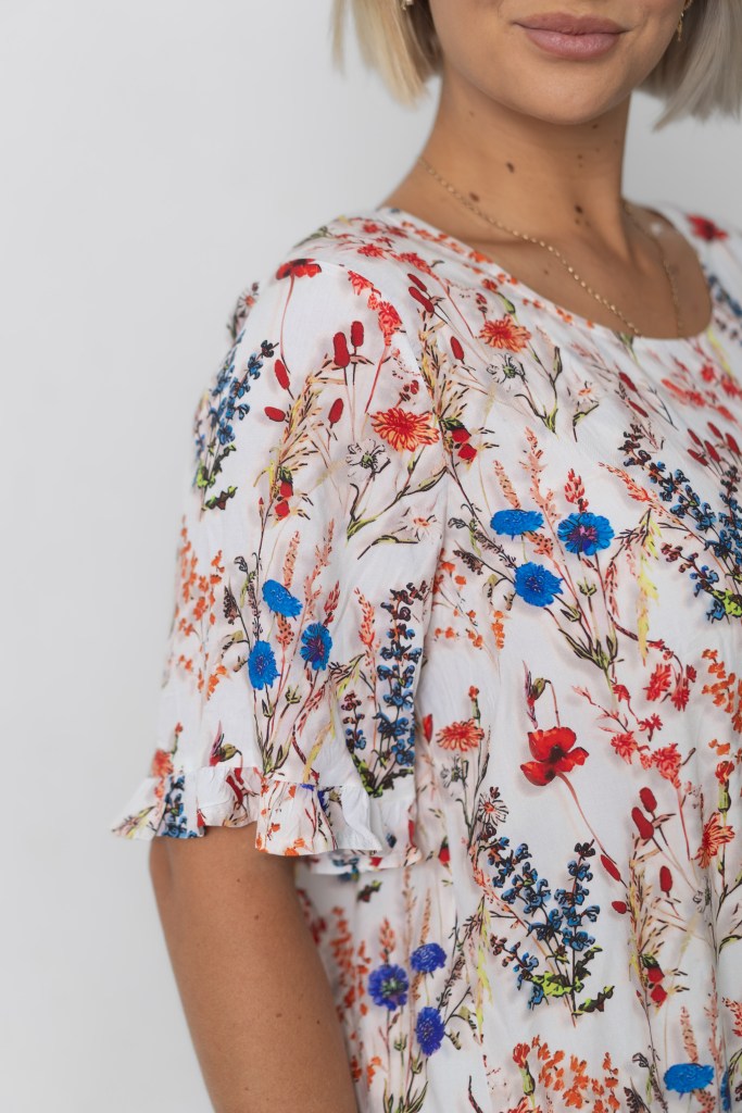 32851-2T WH RAYON FLORAL PRT FRILL HEM S/S TOP size 8-18