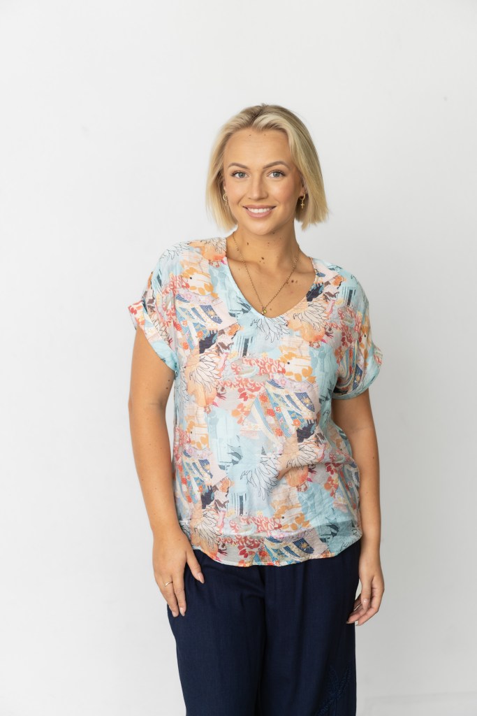32925L BL VISCOSE POLYESTER JAPANESE PRT V NK TOP size 8 -18