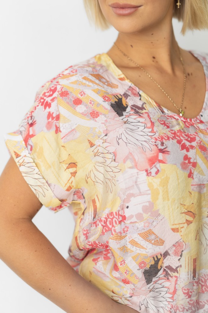 32925L YE VISCOSE POLYESTER JAPANESE PRT V NK TOP size 8 -18
