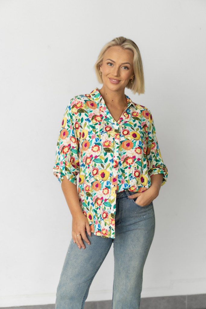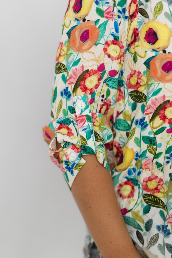 32805- 1G WH VISCOSE FLORAL PRT ROLL SLV BLOUSE size 8 – 18
