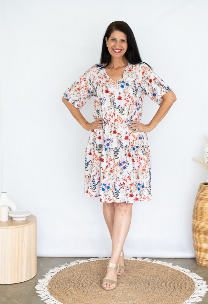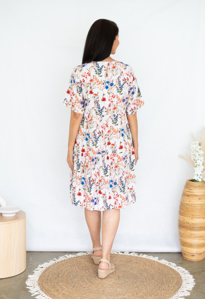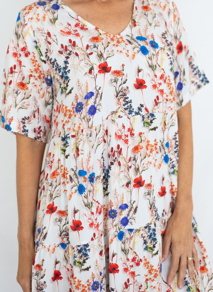 38952 CR RAYON FLORAL PRT V NK S/S TIERED DRESS size 8 – 20