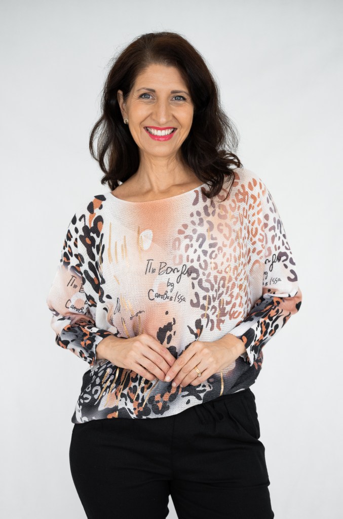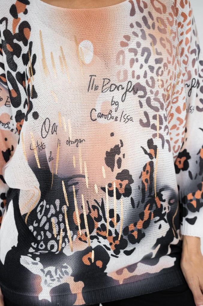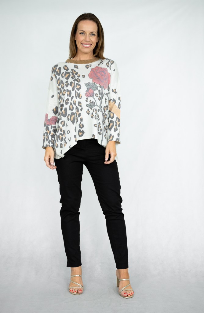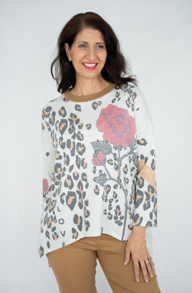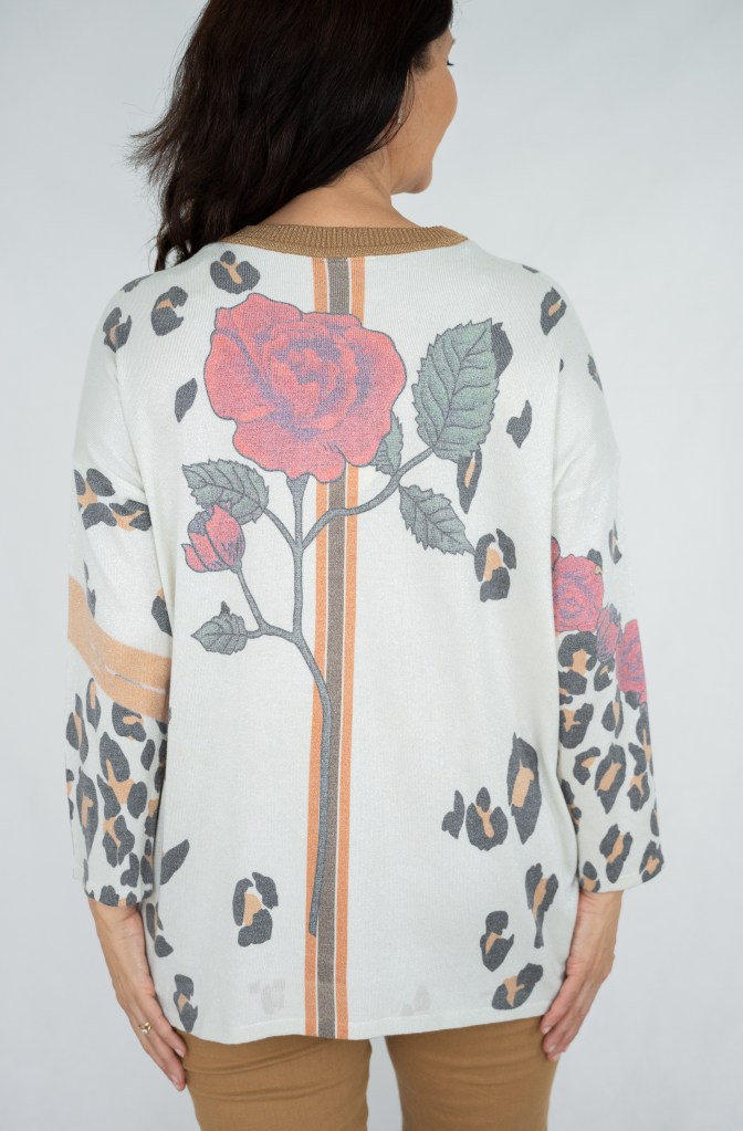 COTTON/POLY/SPAN ROSE AND LEOPARD LUREX KNIT JUMPER