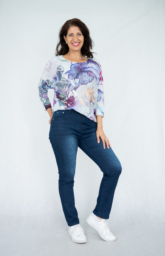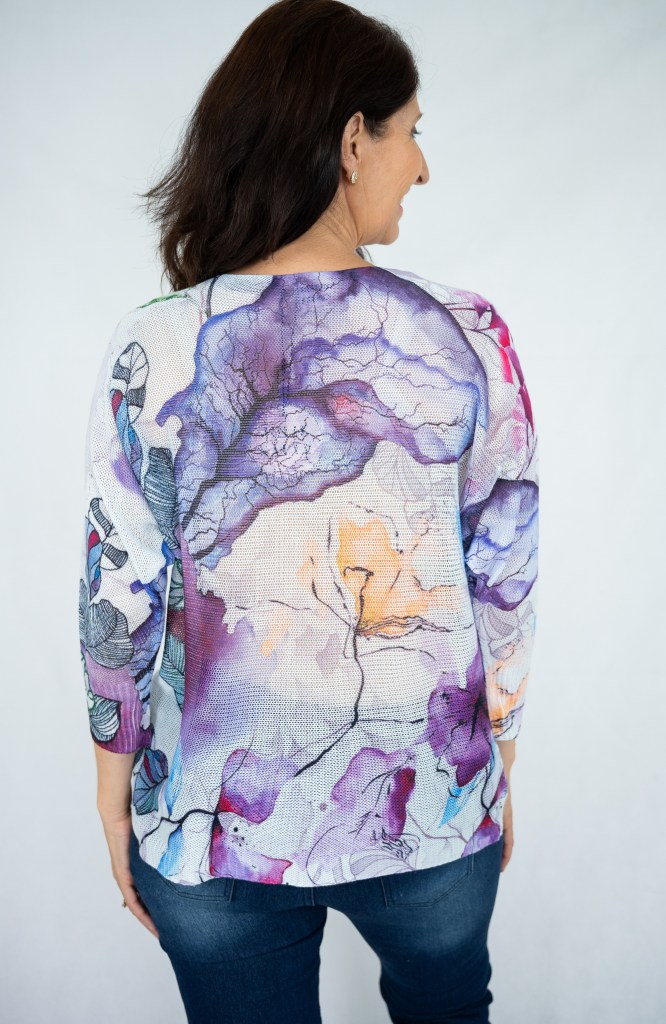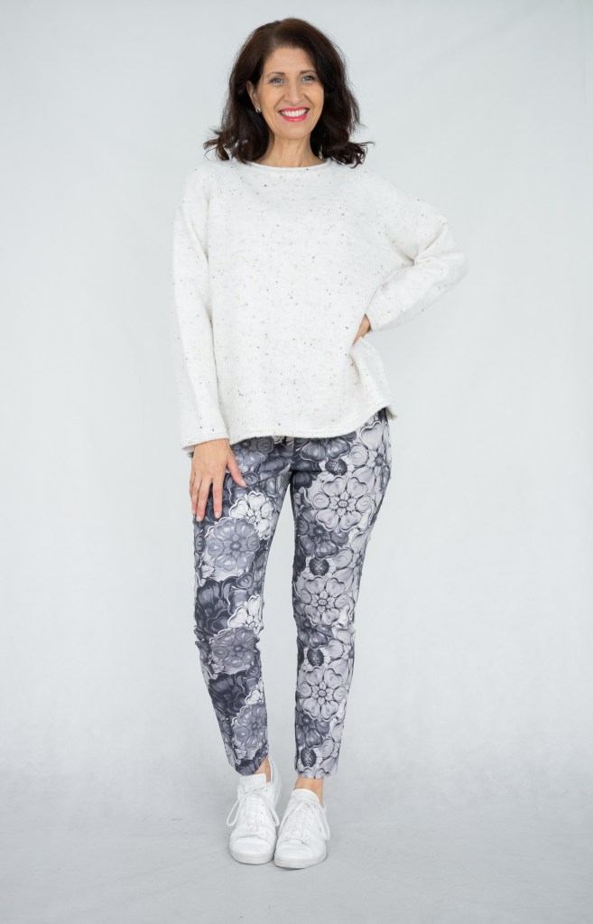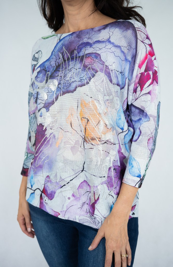 COTTON ABSTRACT FLORAL SILVER PRT KNIT JUMPER