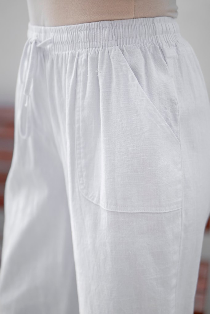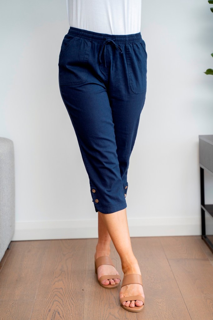LINEN RAYON BTN DETAIL STRETCH CAPRI PANT