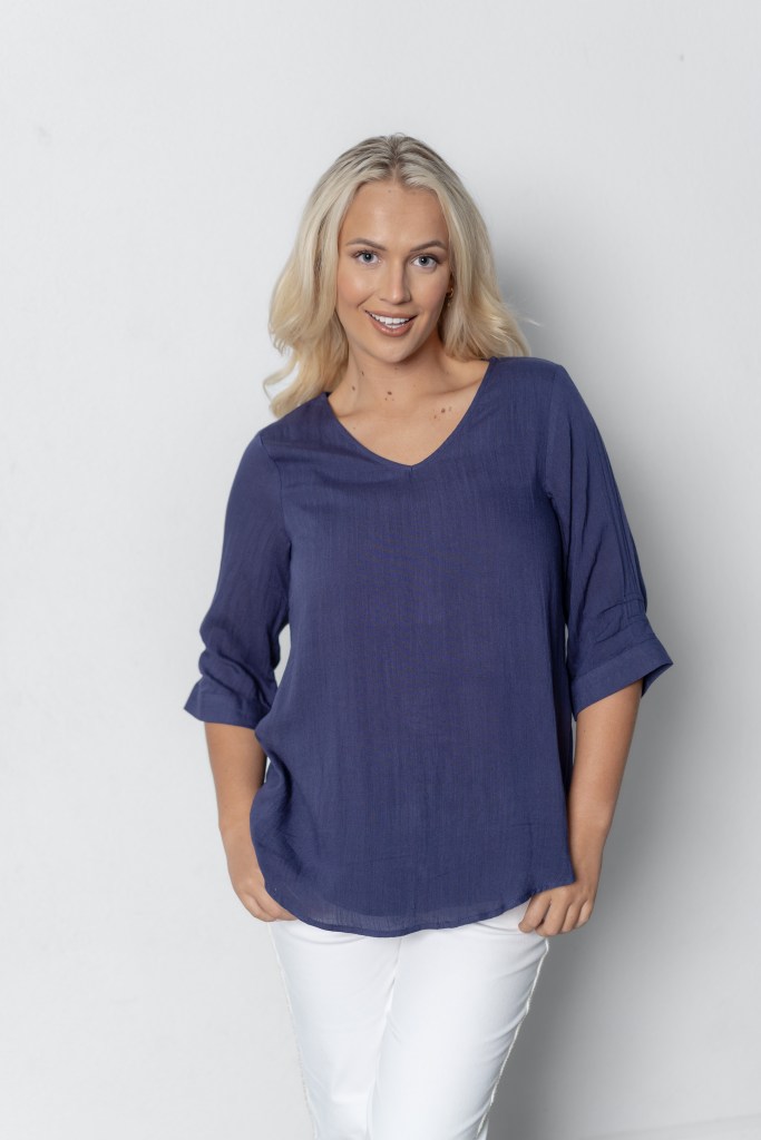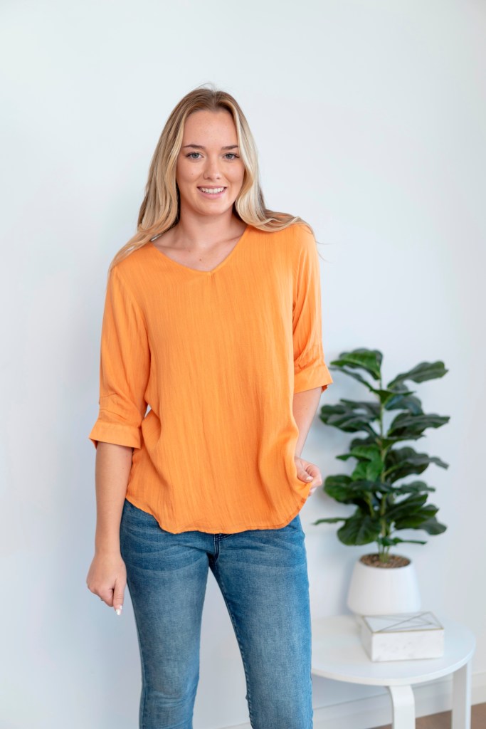 LIN/RAY PLAIN COLOR 3/4 SLV TOP