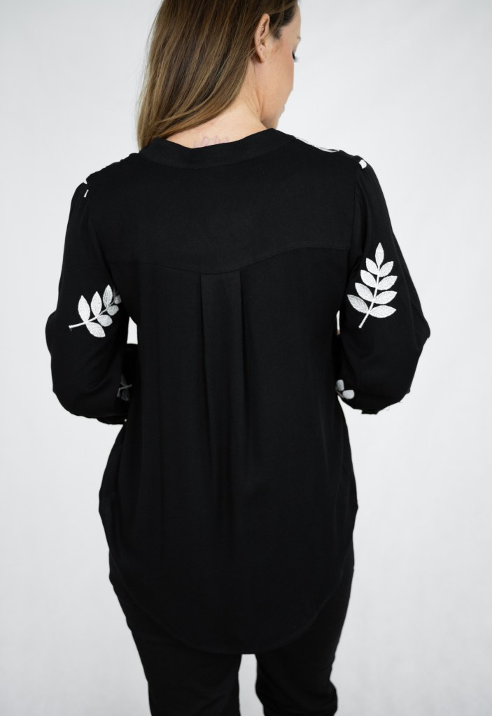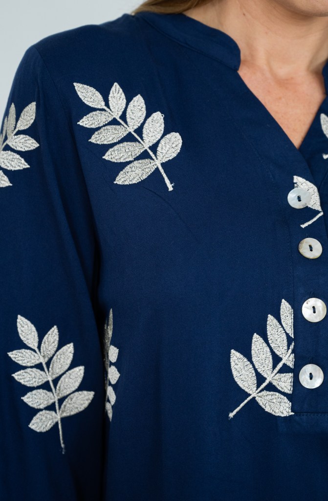 RAYON GOLDEN LEAVES EMB 3/4 SLV BLOUSE