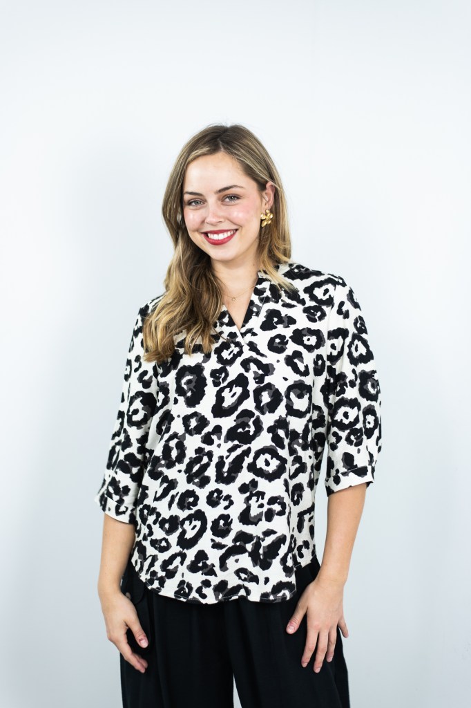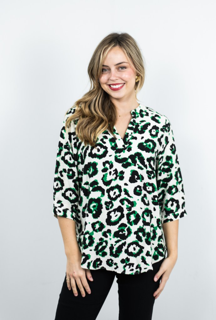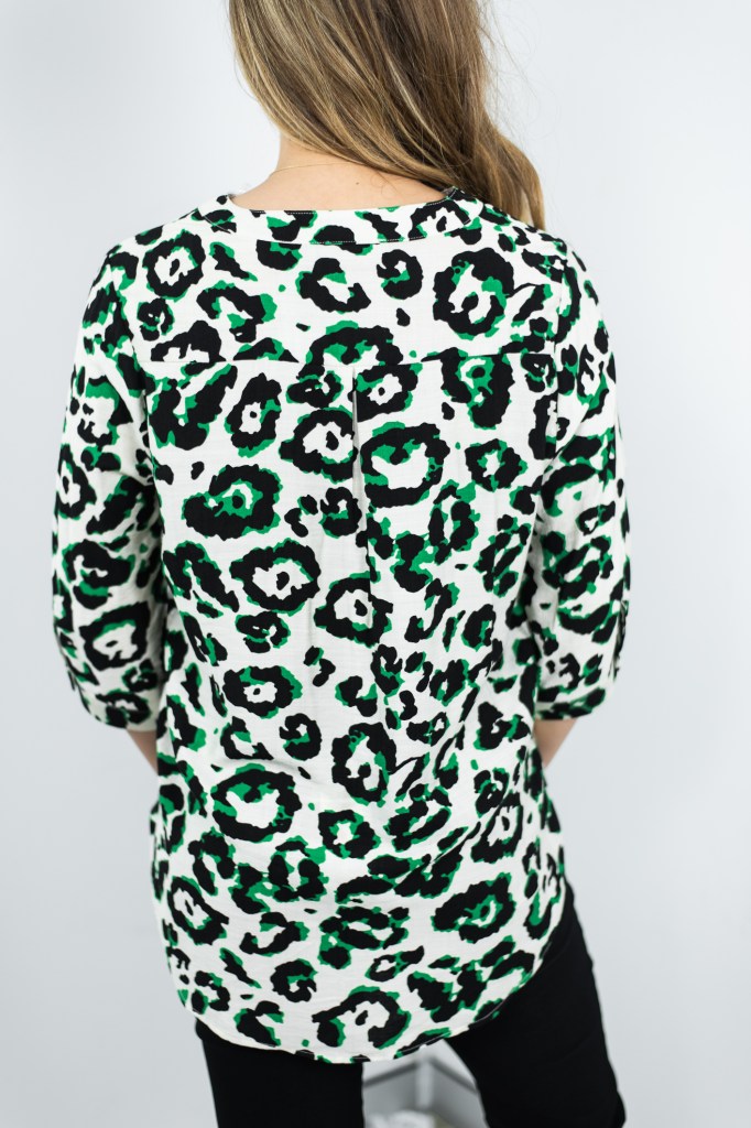 RAYON/POLY LEOPARD PRT V NK BLOUSE
