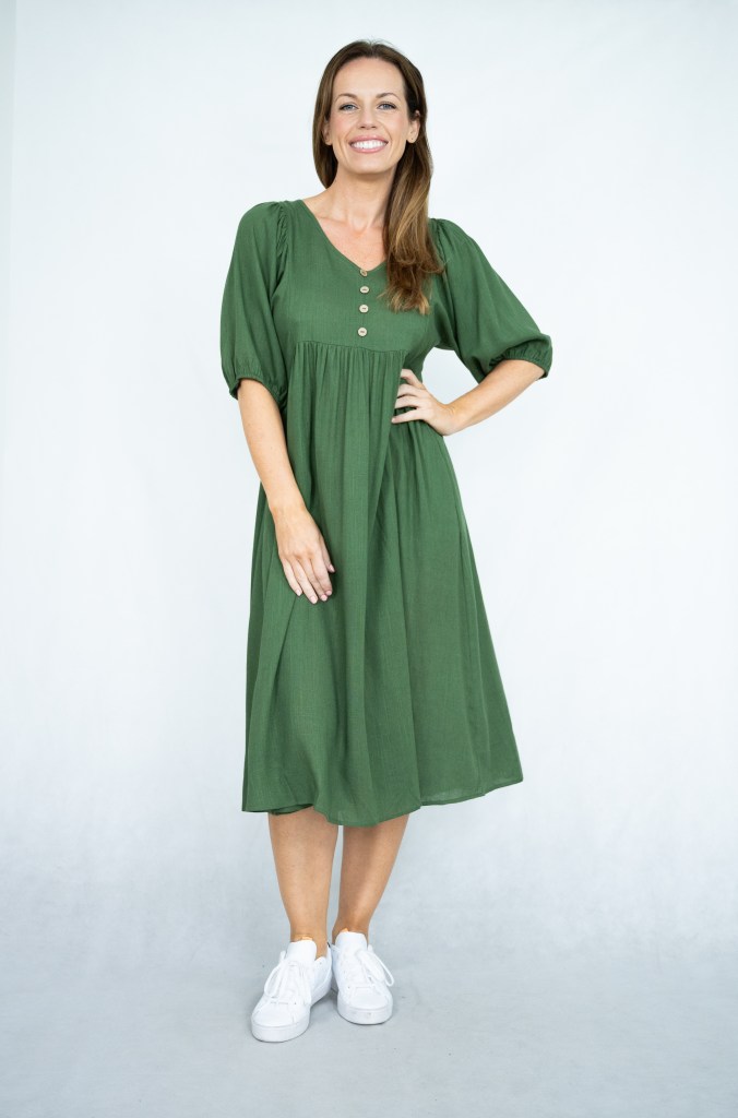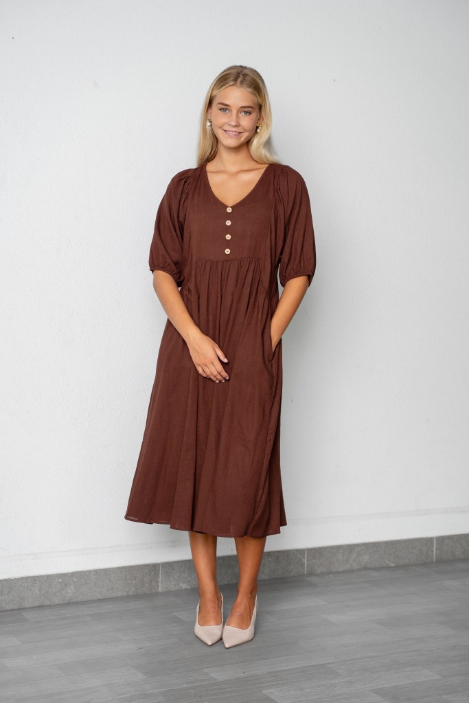 PLAIN LINEN VISCOSE V/N PEASANT DRESS