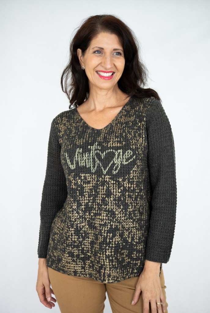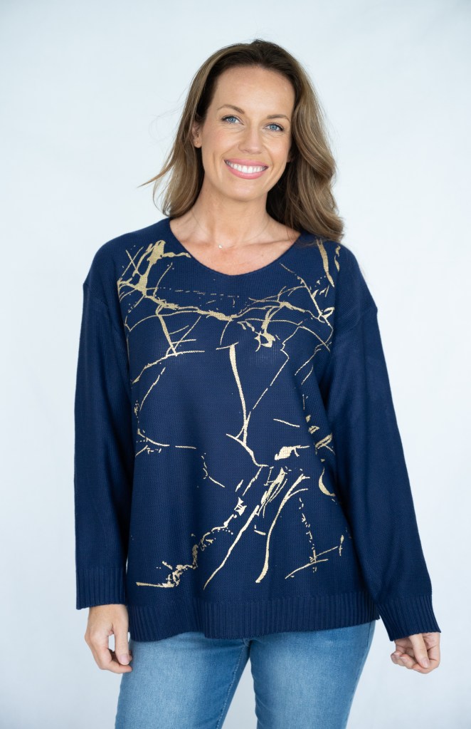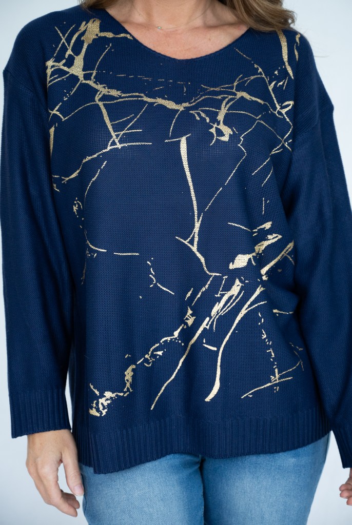 COTTON/POLY GOLDEN PRT V/N KNIT JUMPER