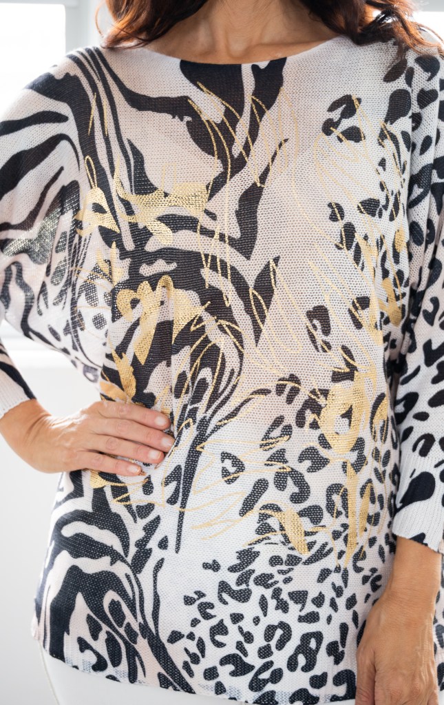 COTTON LEOPARD & TIGER GOLDEN PRT KNIT