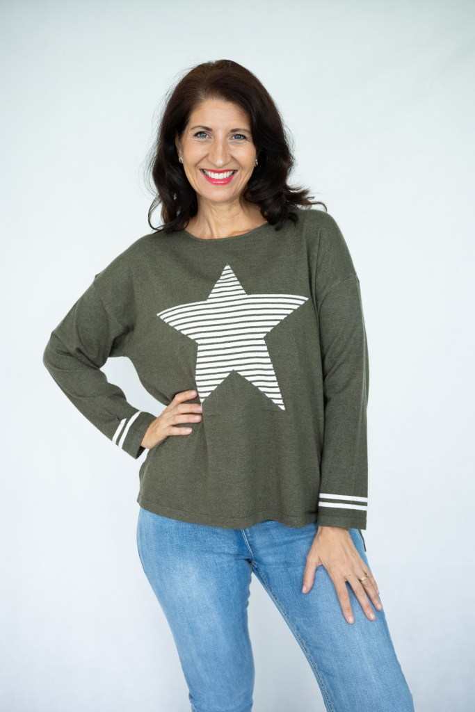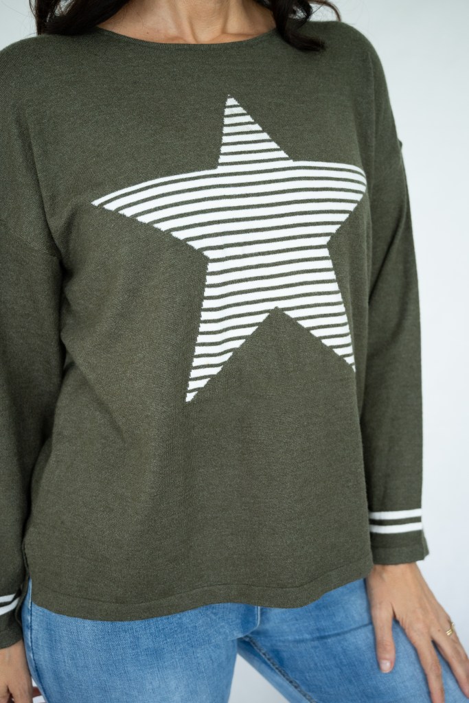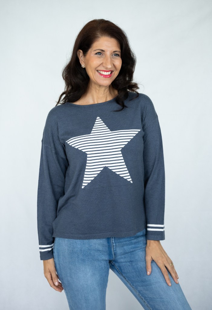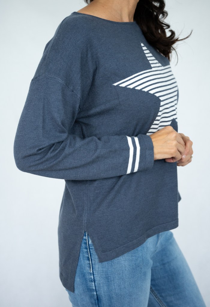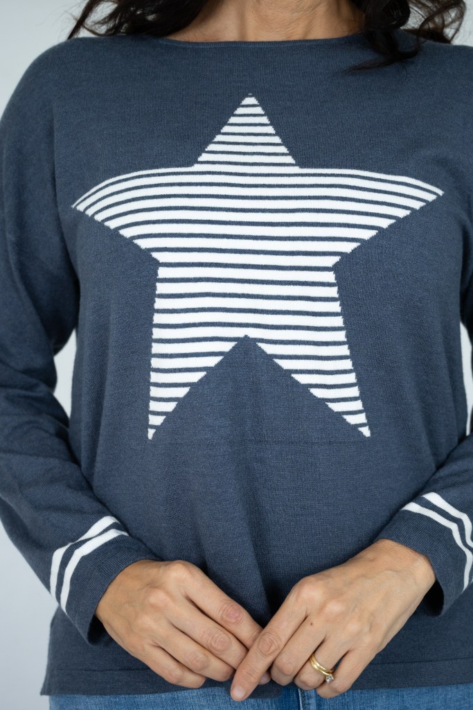 COTTON/POLY STRIP STAR R/N KNIT JUMPER