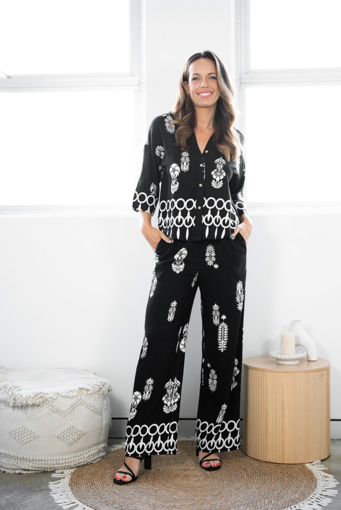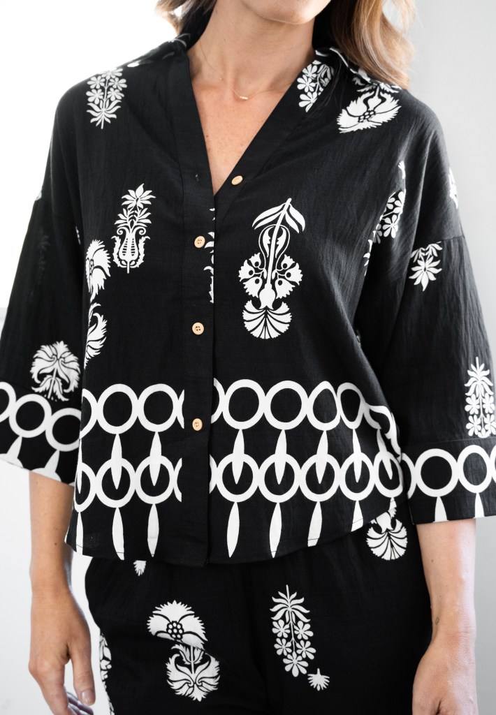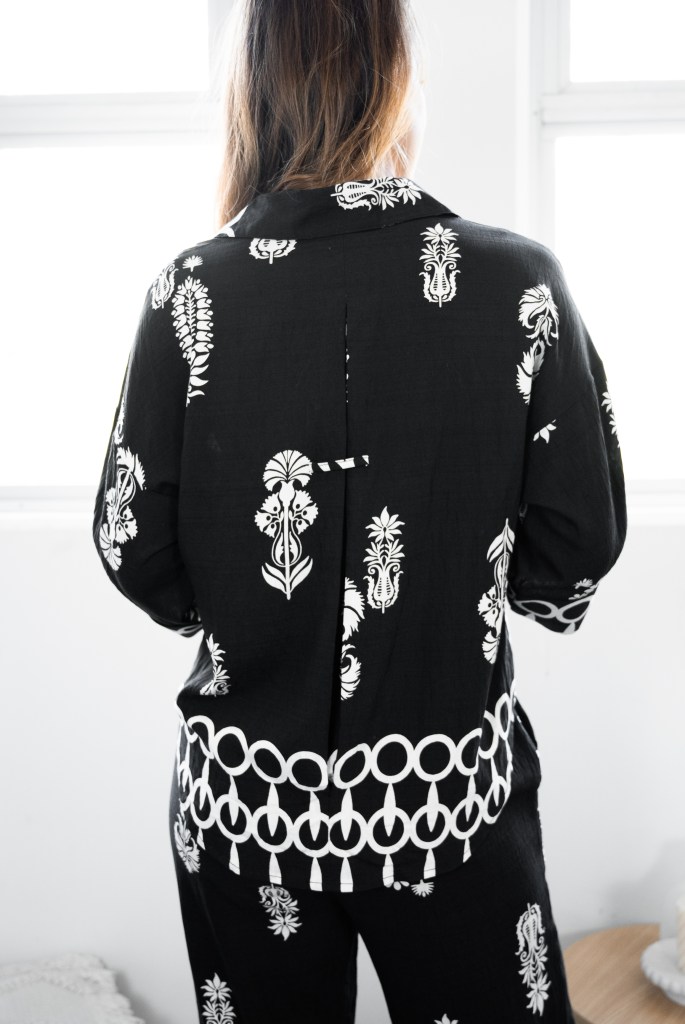 VISCOSE/POLY FLORAL BORDER PRT SHIRT & PANTS SET