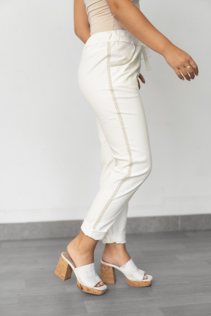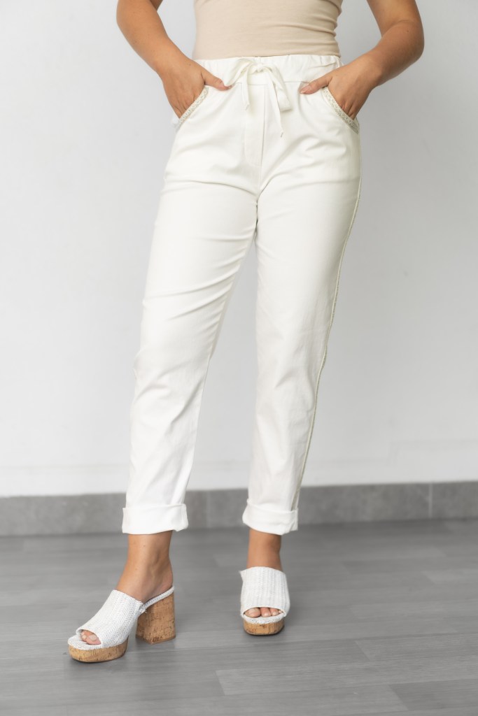 COTTON/SPAN GLITTER TRIM STRETCH PULL ON PANT