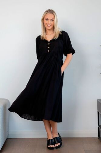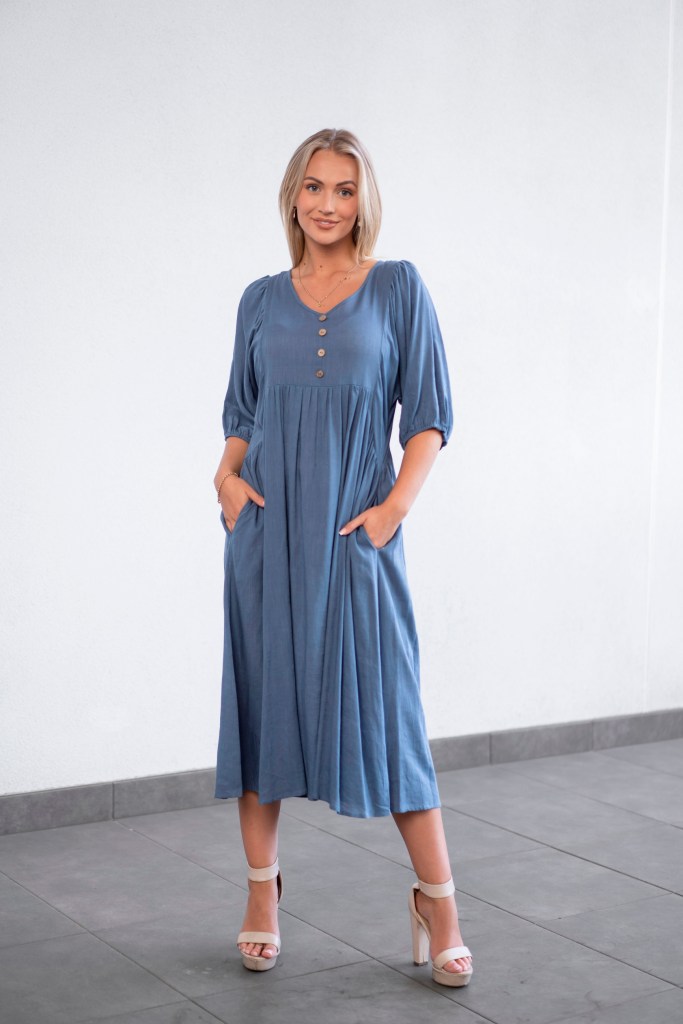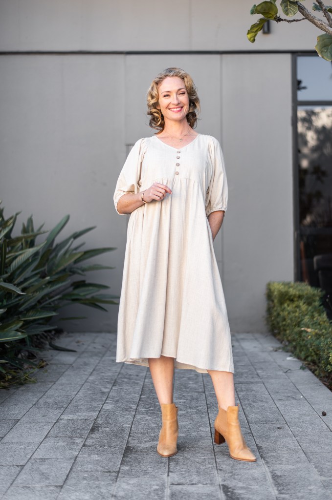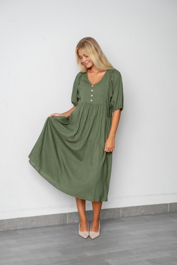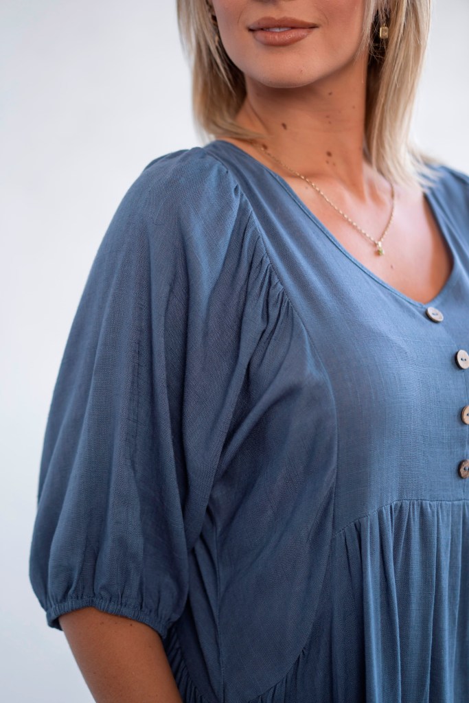 LINEN/VISCOSE PLAIN LINEN VISCOSE V/N PEASANT DRESS