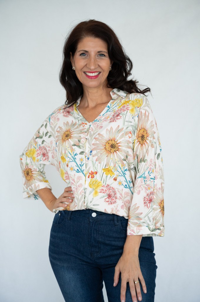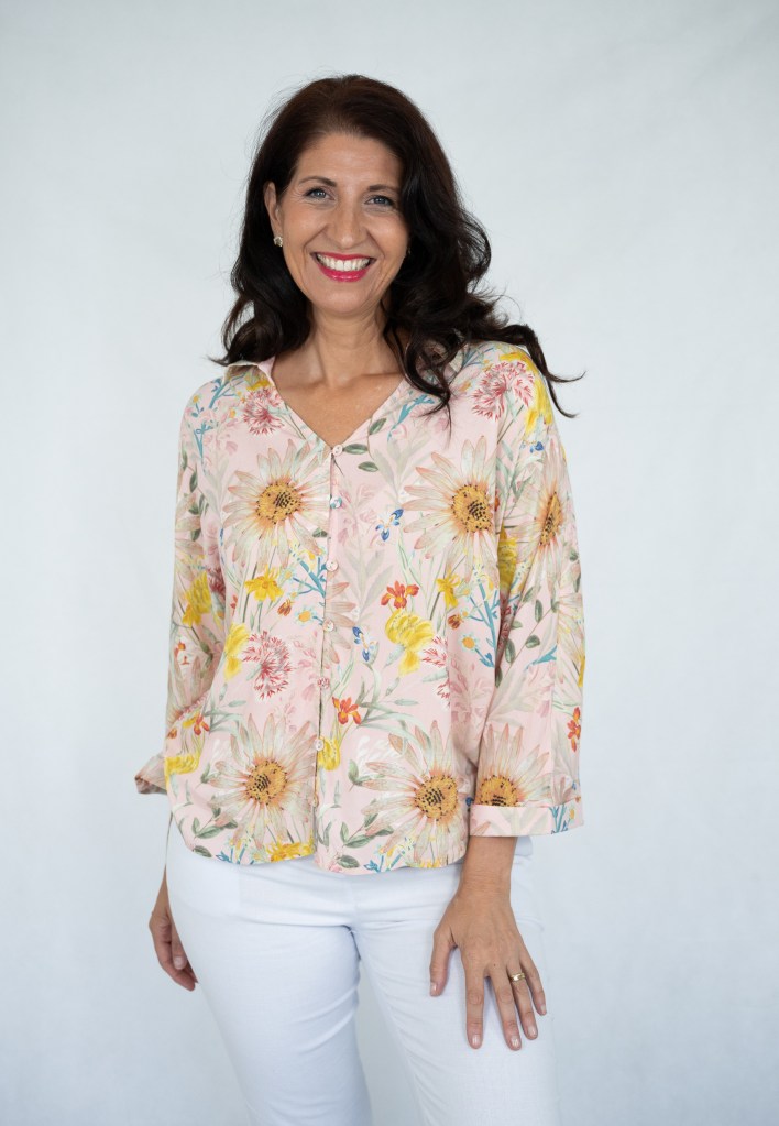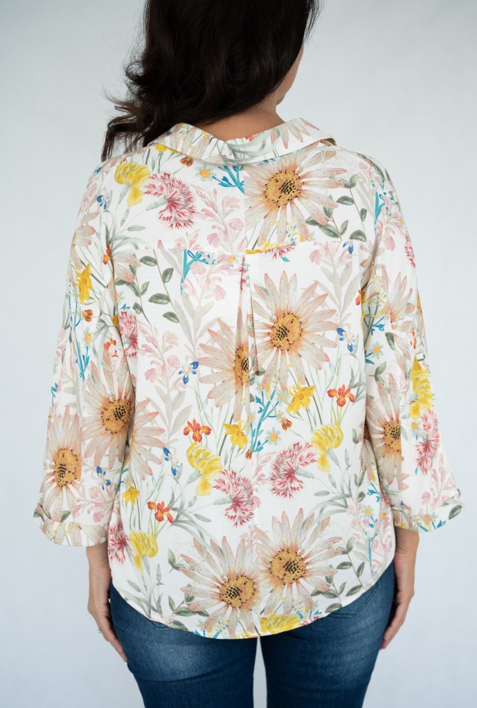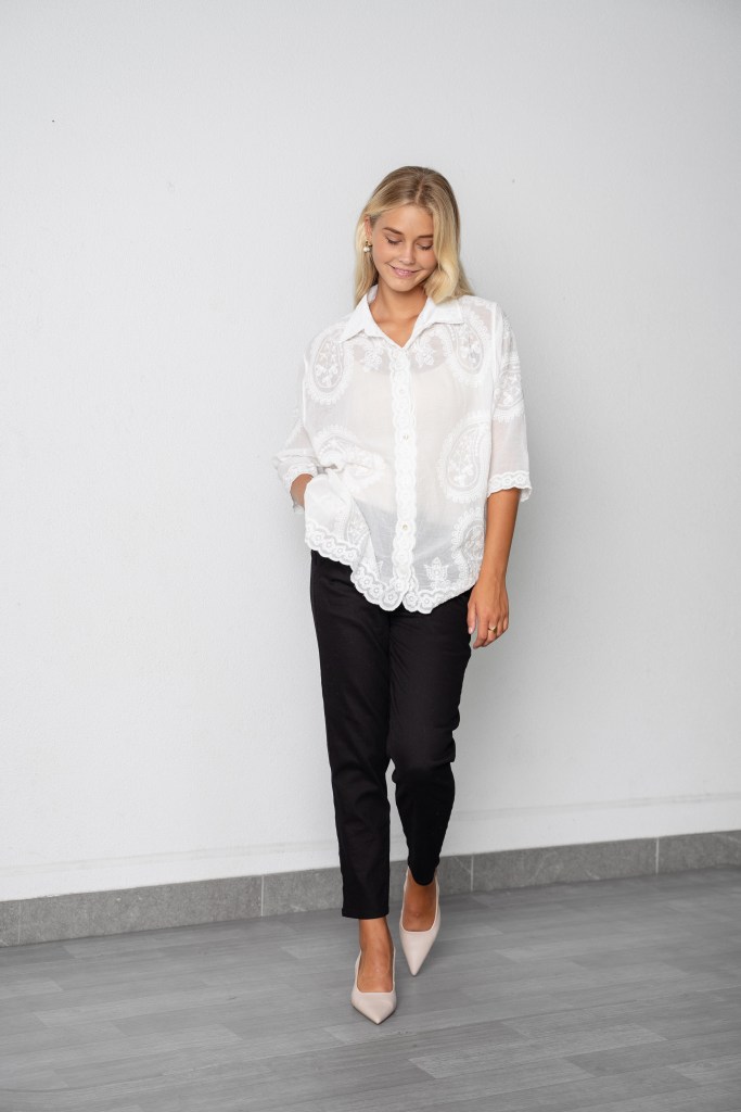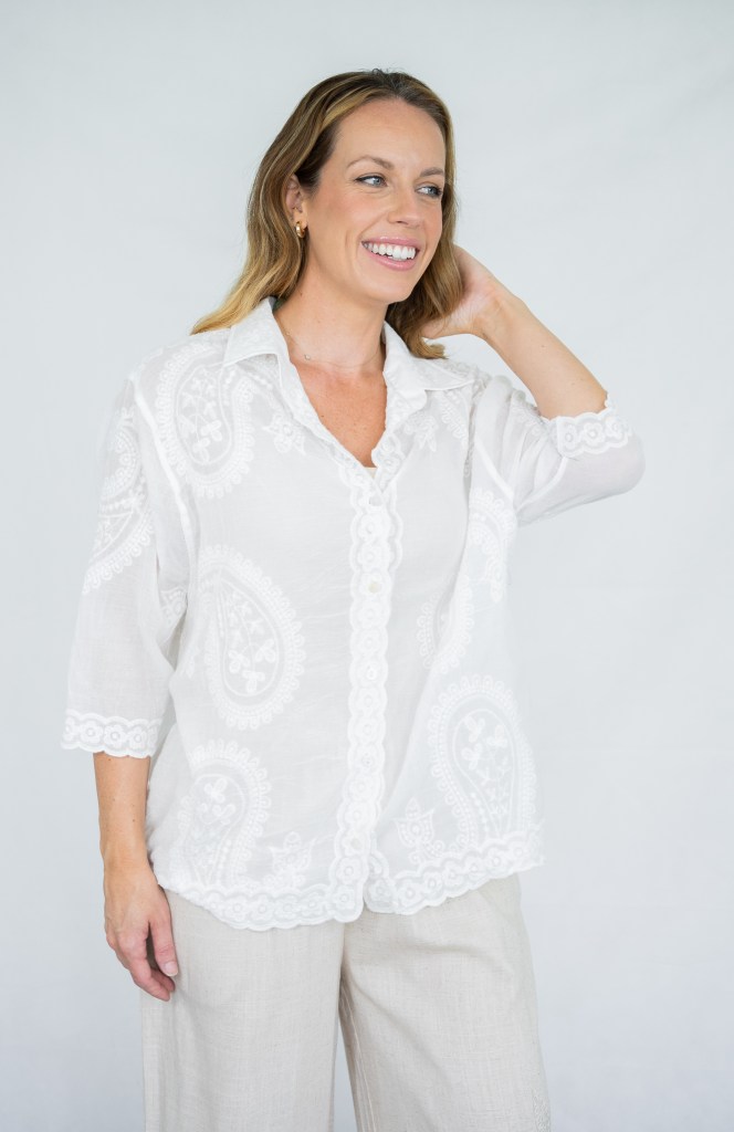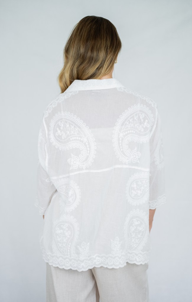 COTTON PAISLEY EMB 3/4 SLV SHIRT