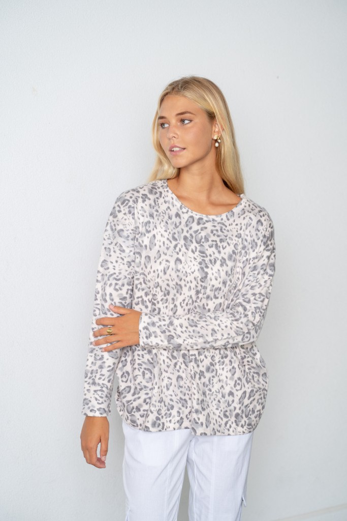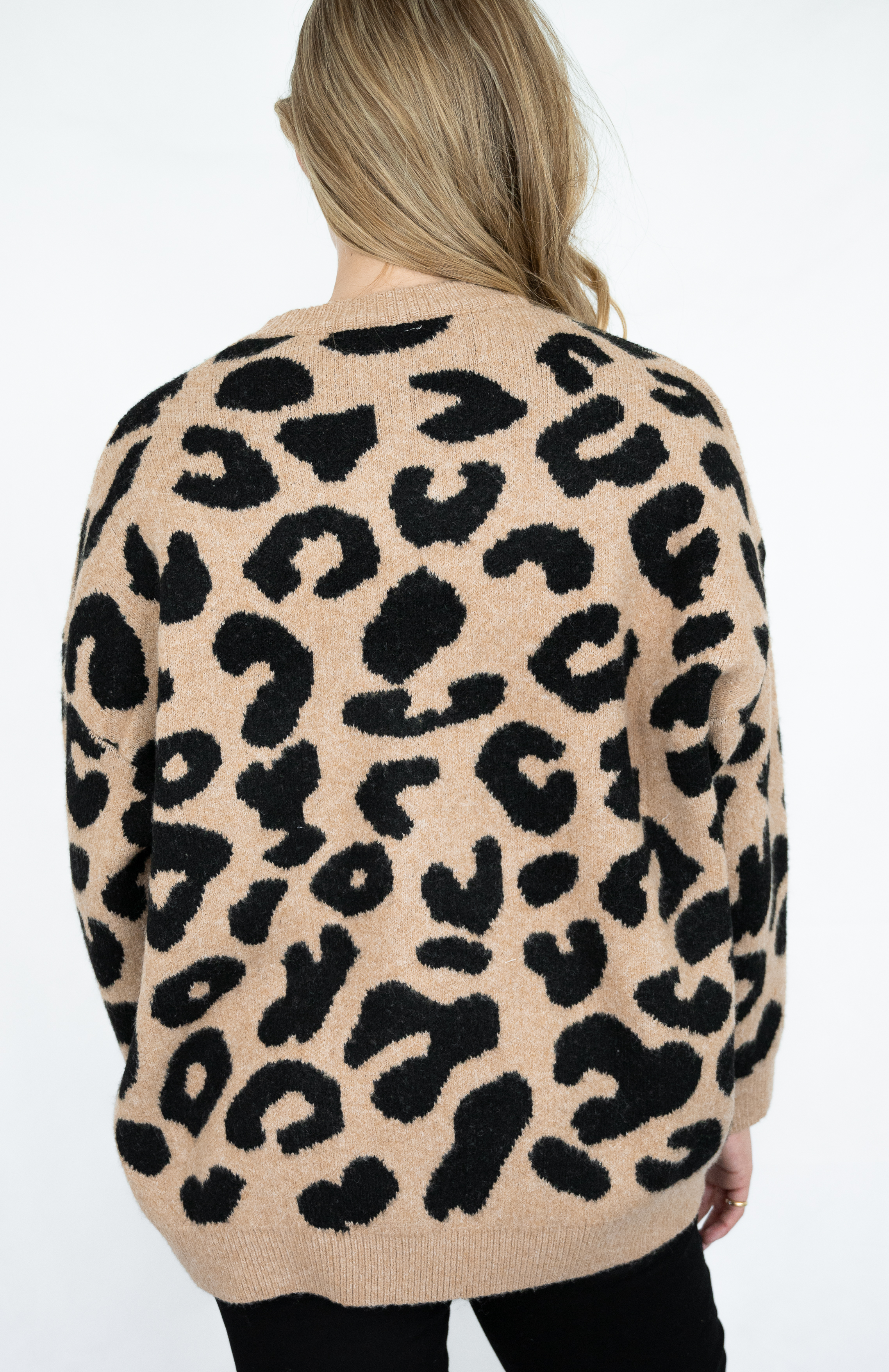 WOOL/POLY LEOPARD PRT KNIT JUMPER