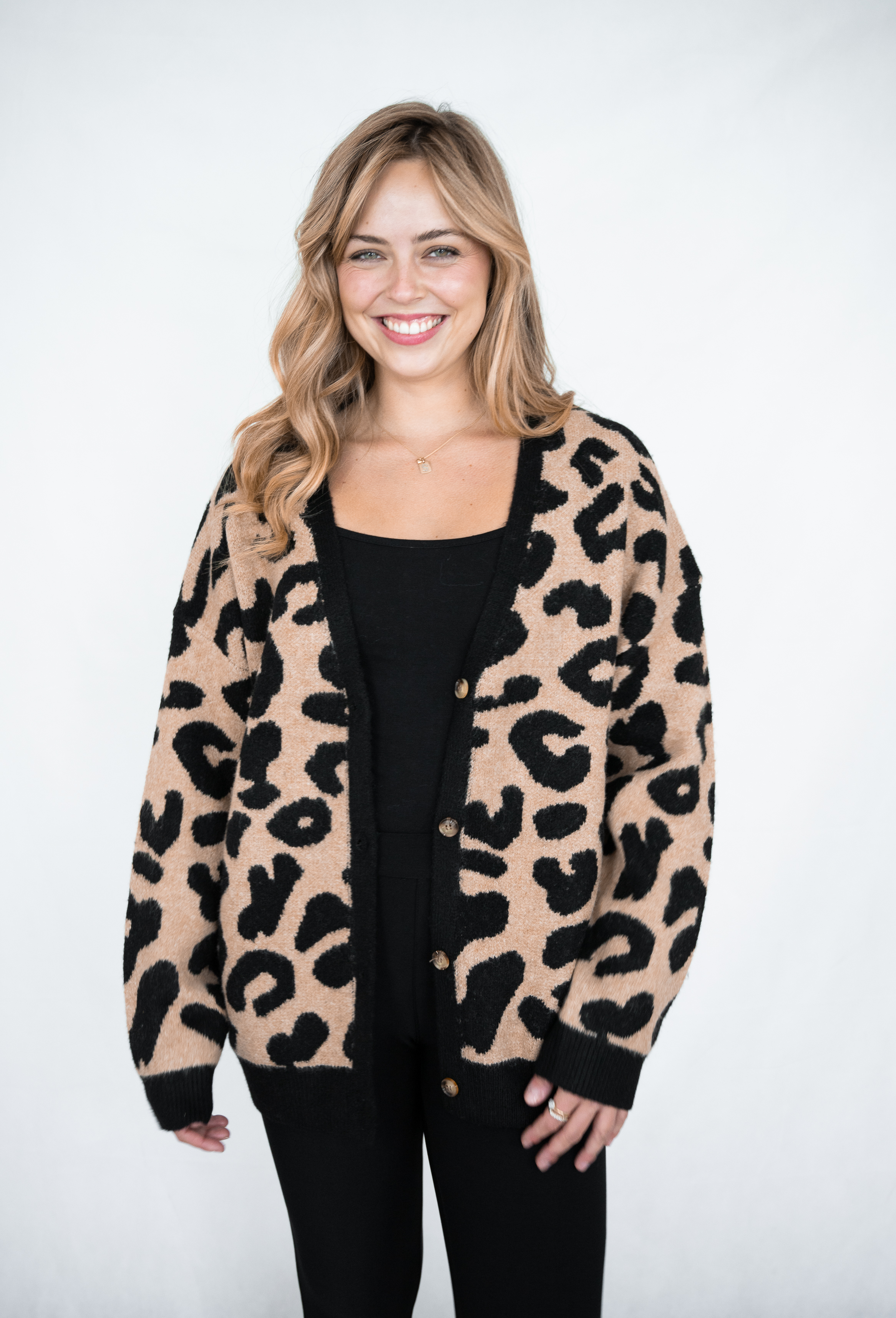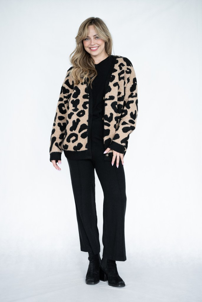 WOOL/POLY LEOPARD PRT KNIT CARDI