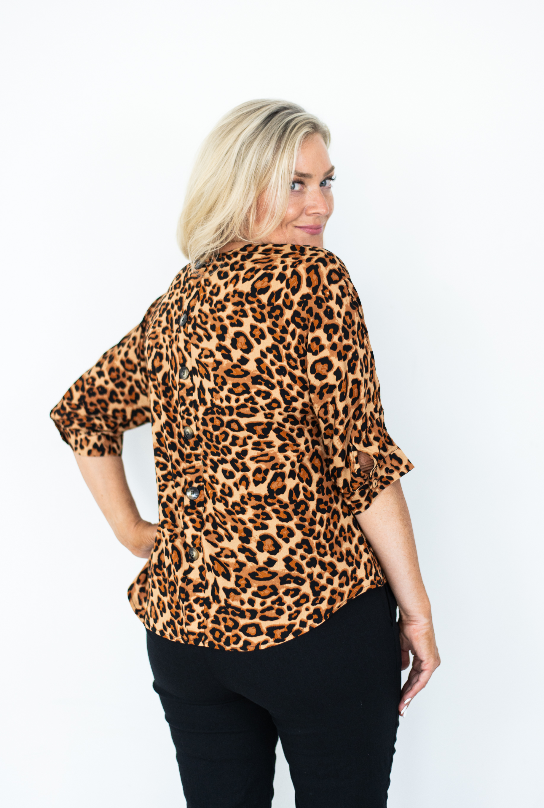 RAYON LEOPARD PRT TIE FRONT 3/4 SLV TOP
