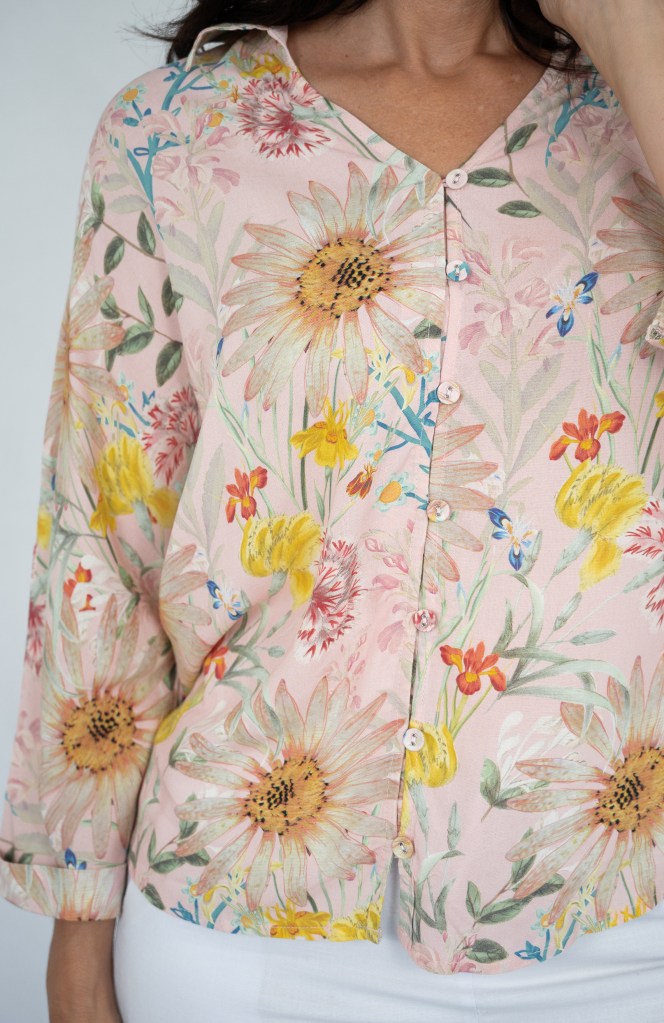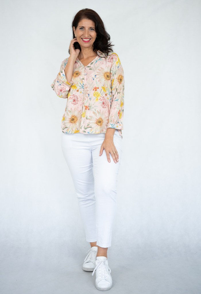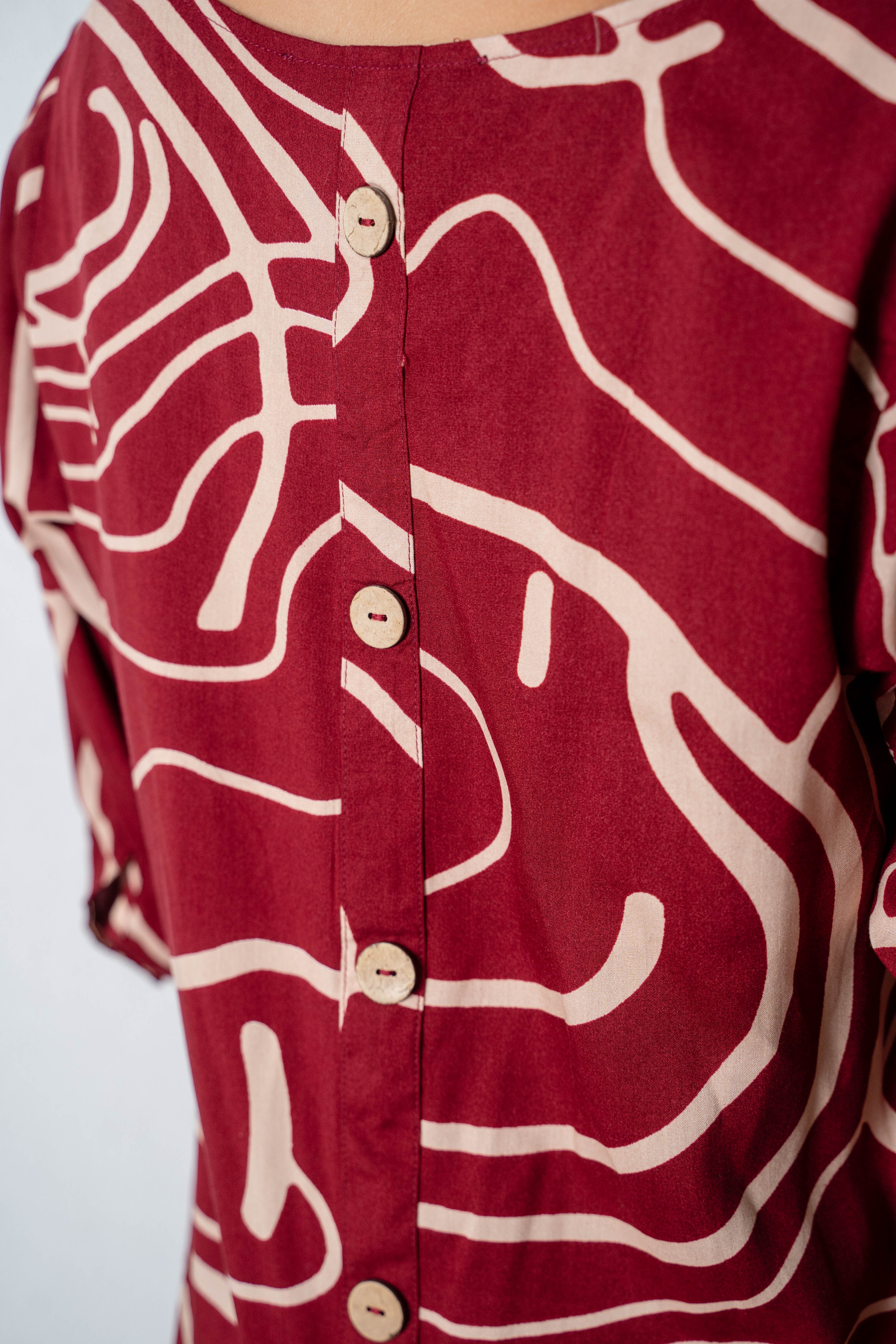 RAYON SCRIBBLE PRT BACK BTN DETAIL S/S TOP