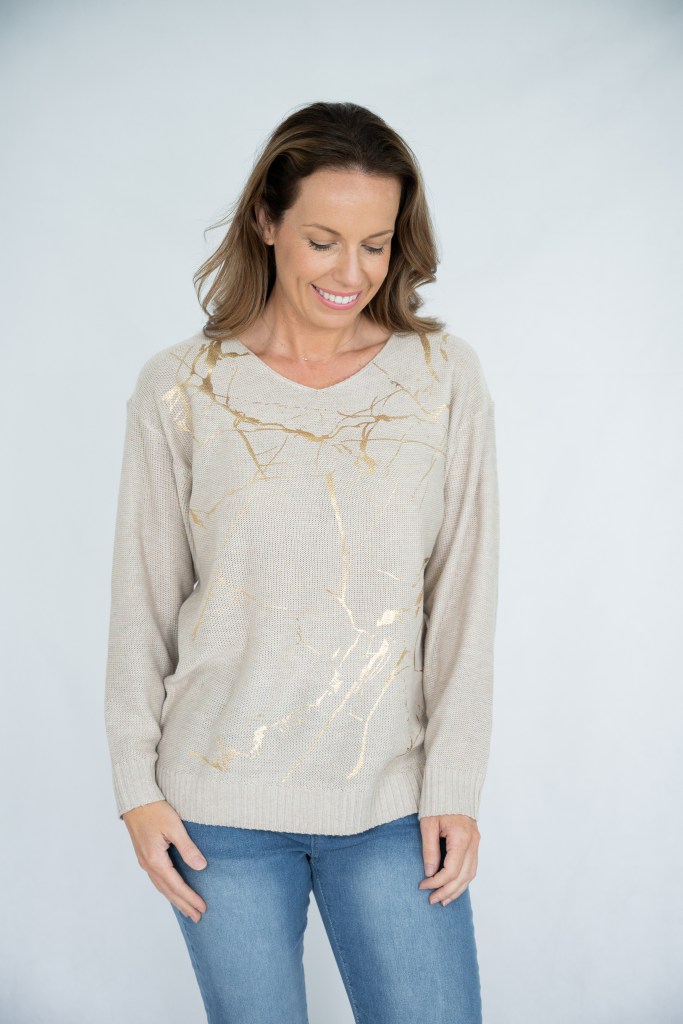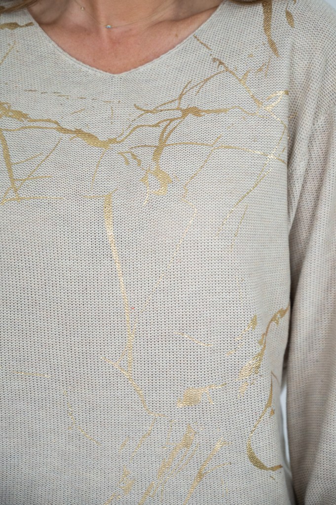 COTTON/POLY GOLDEN PRT V/N KNIT JUMPER