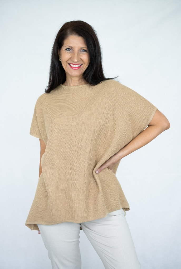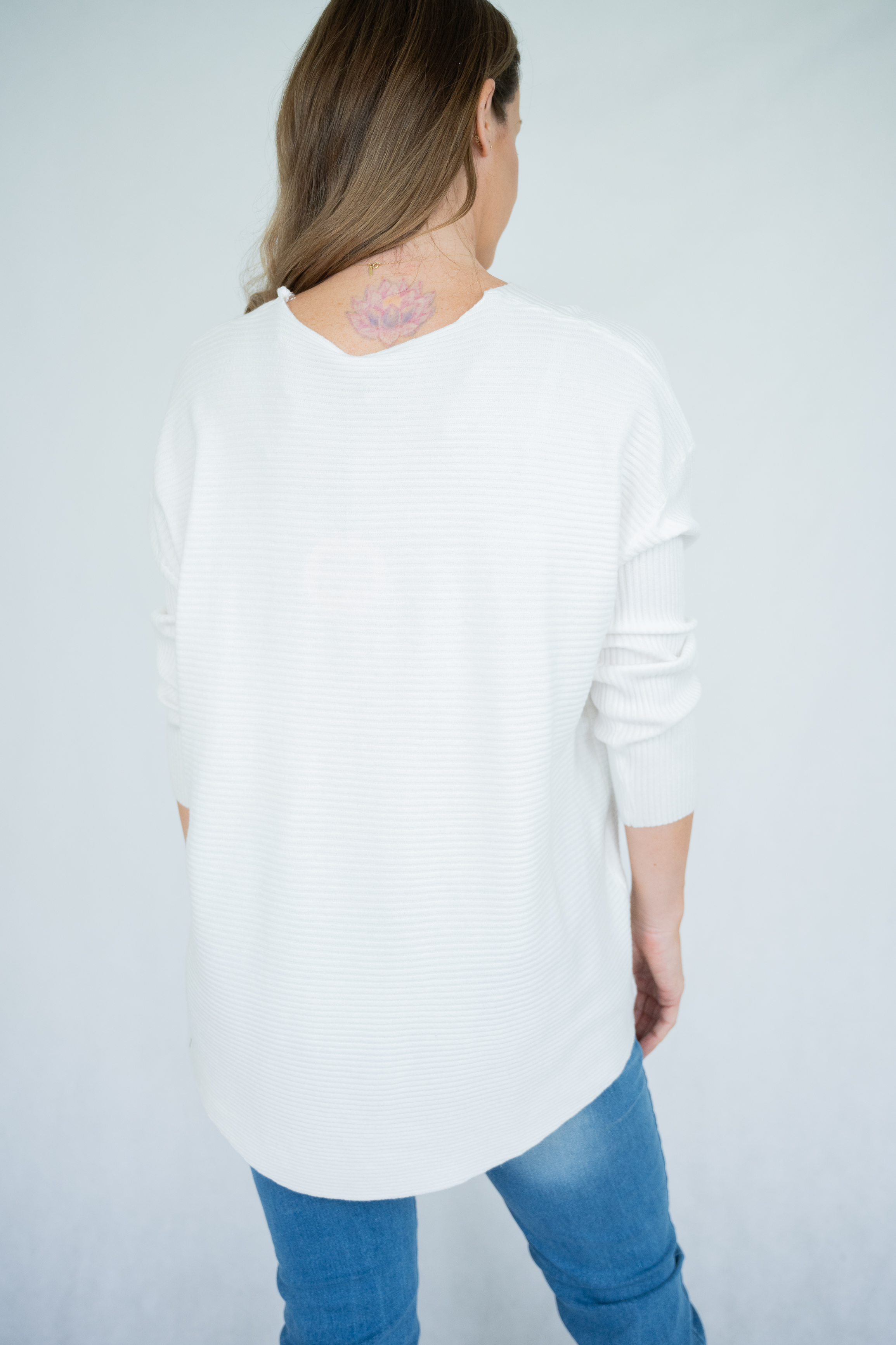 COTTON/POLY SPA FOLD CUFF V/N KNIT JUMPER