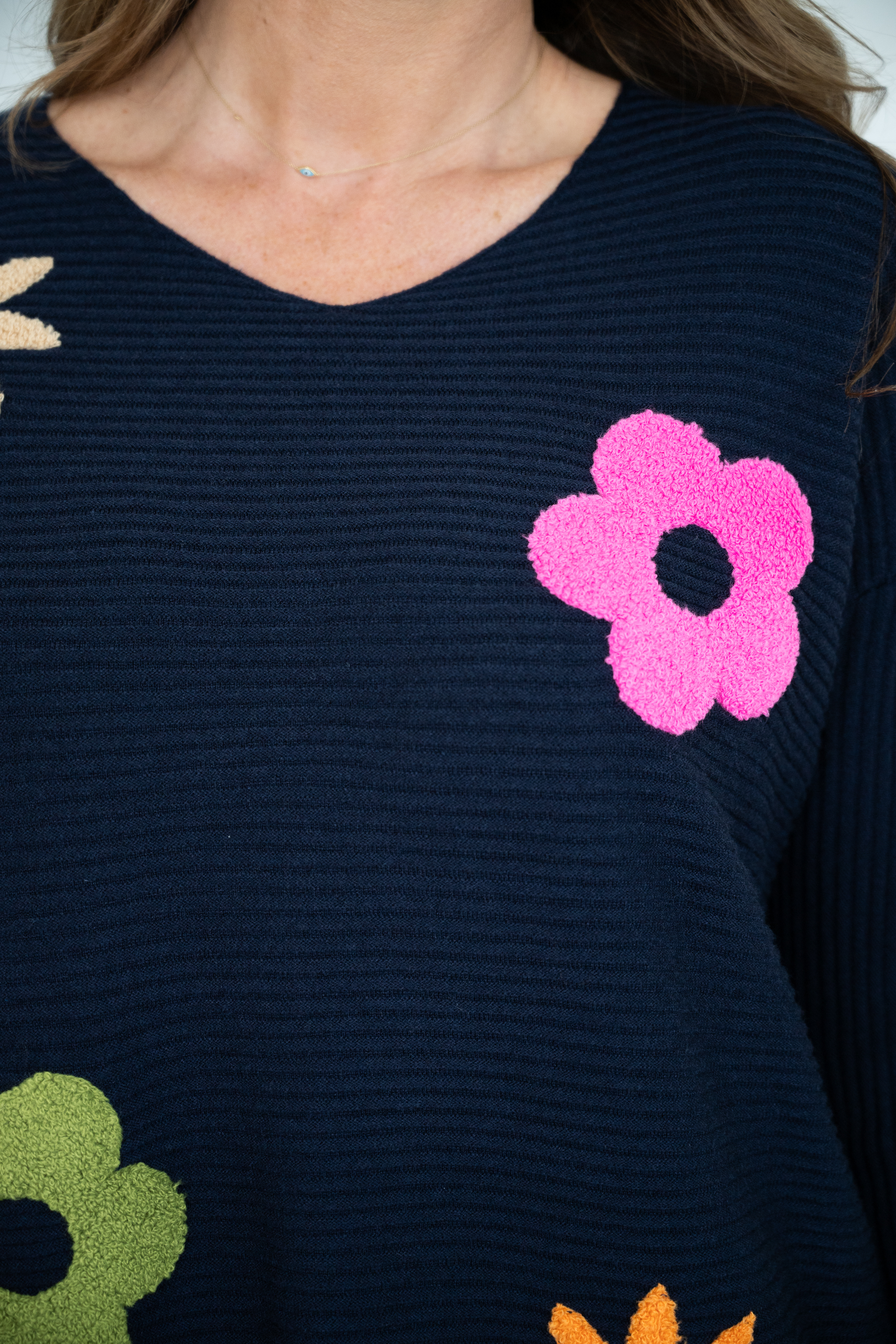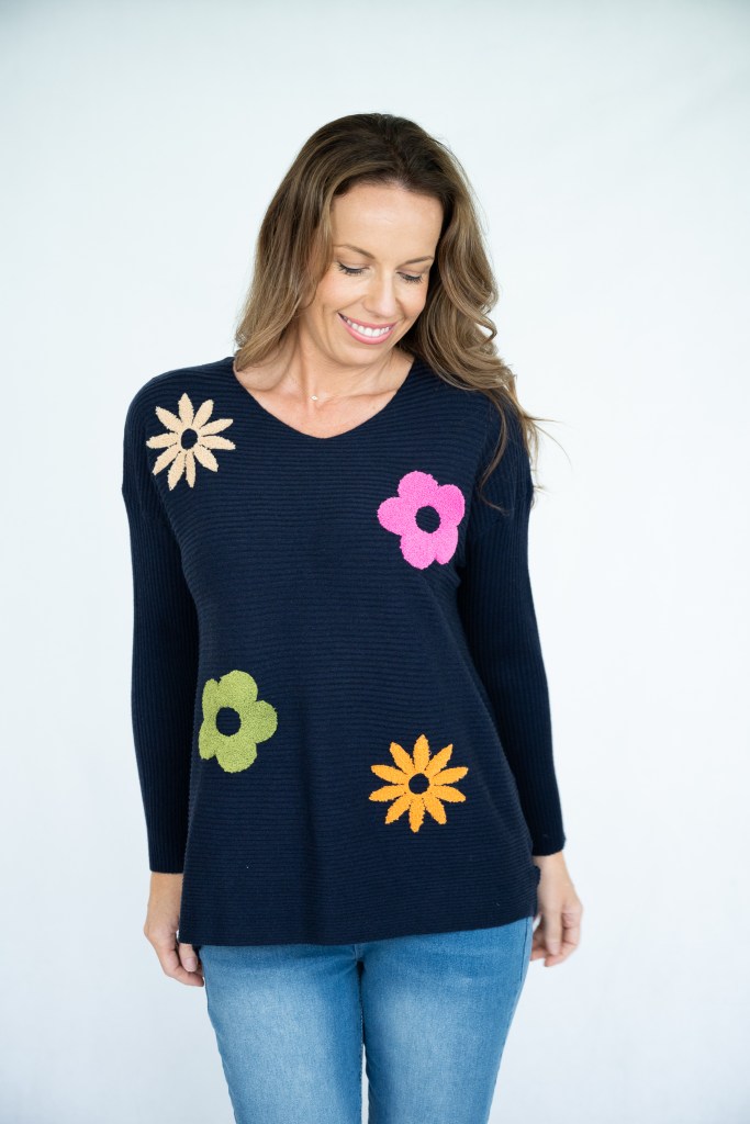 COTTON/POLY SPA DAISY EMB RIB KNIT JUMPER