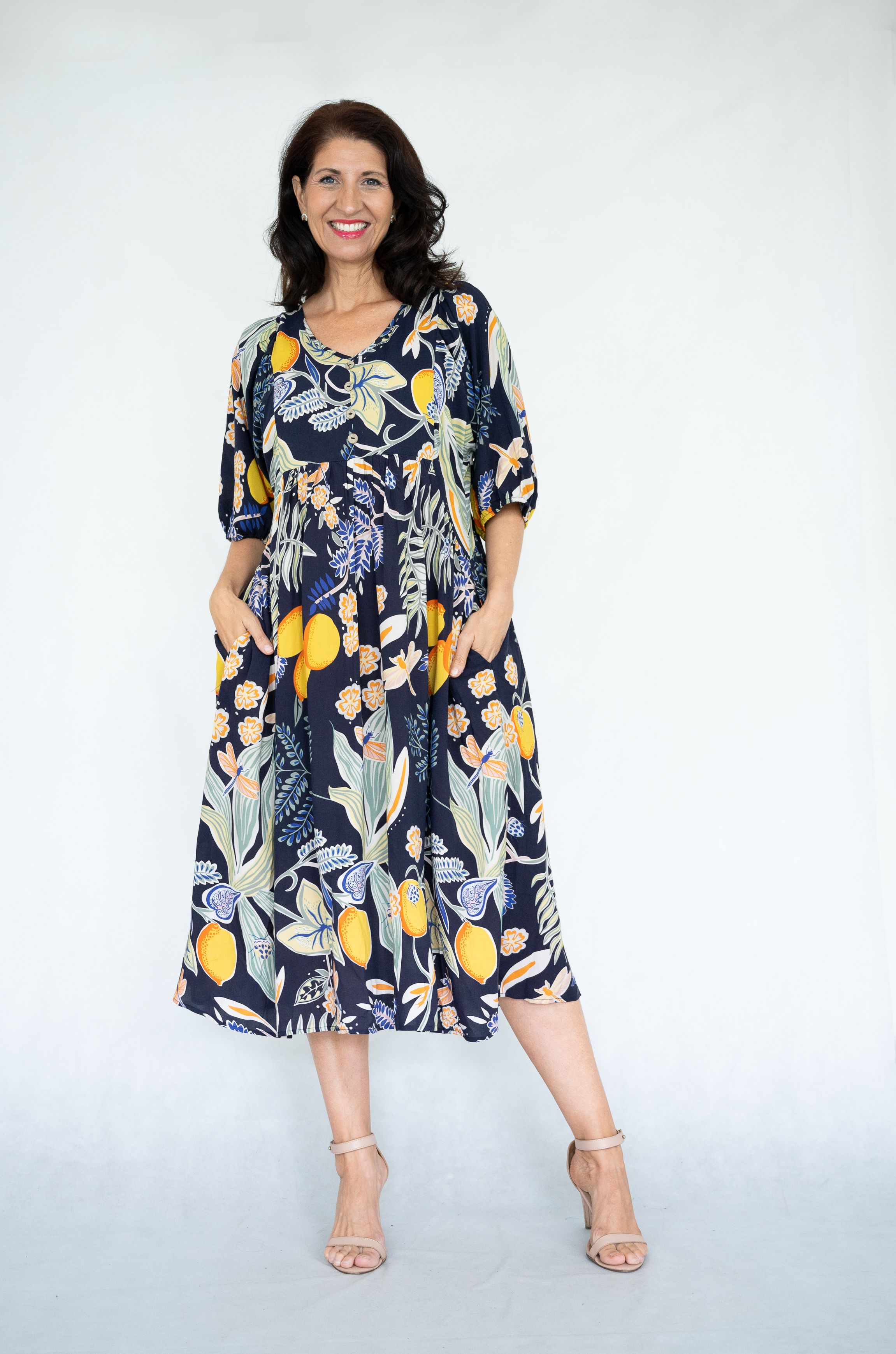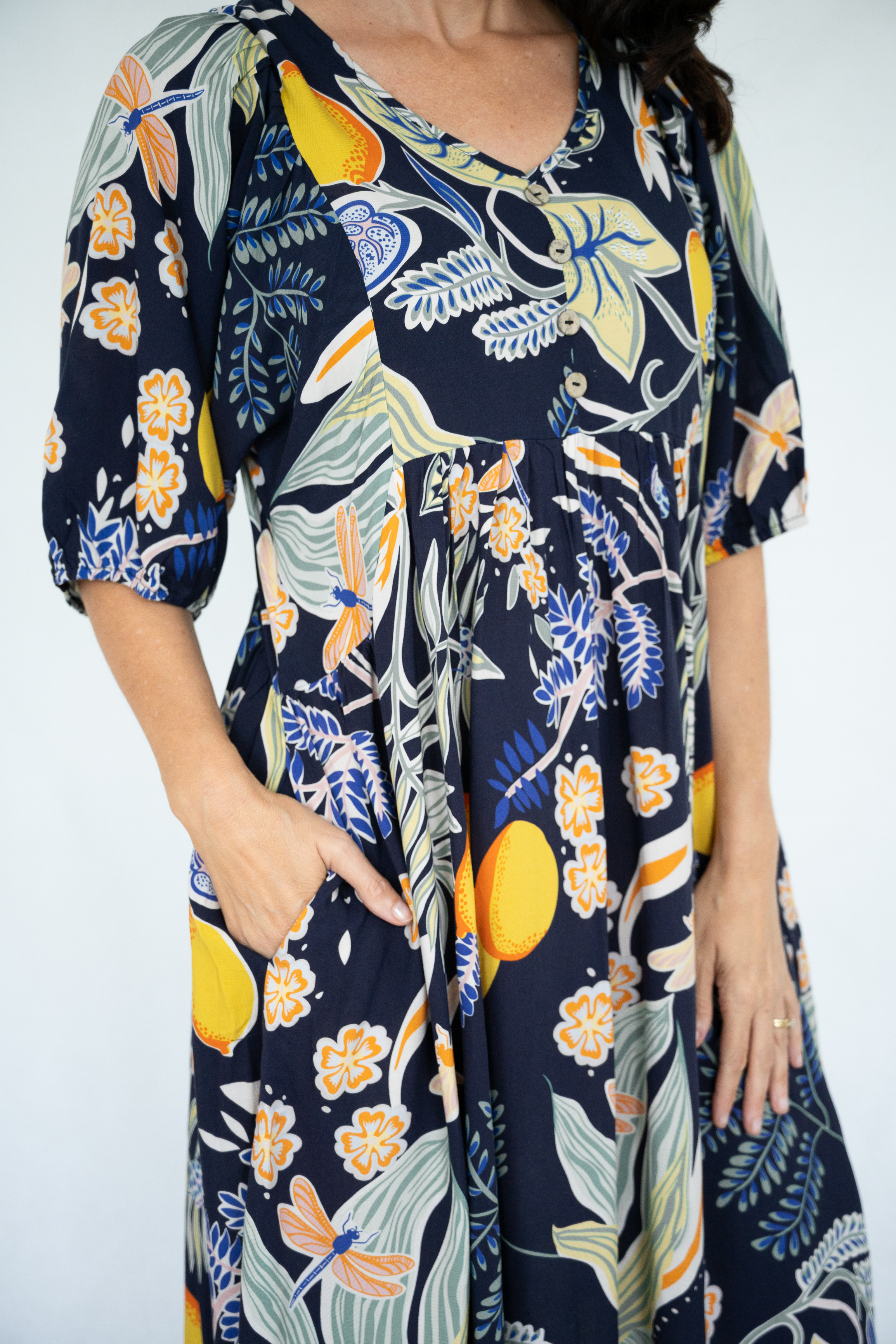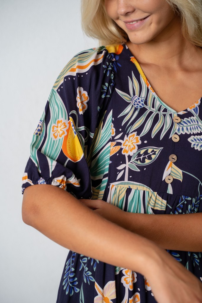 VISCOSE GARDEN PRT V/N PEASANT DRESS