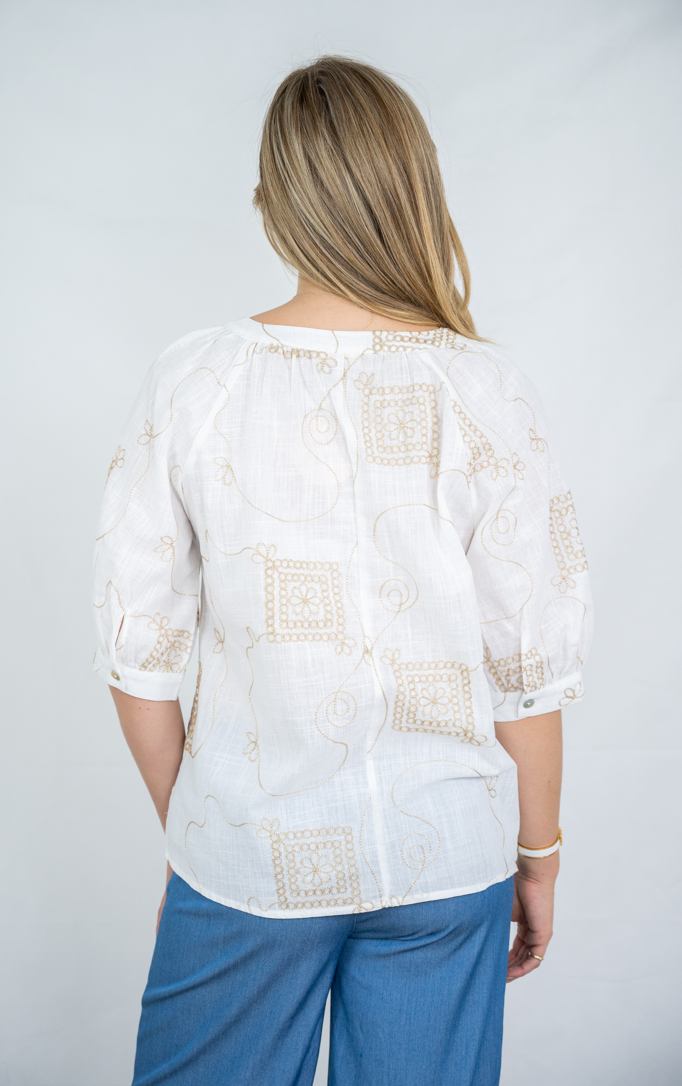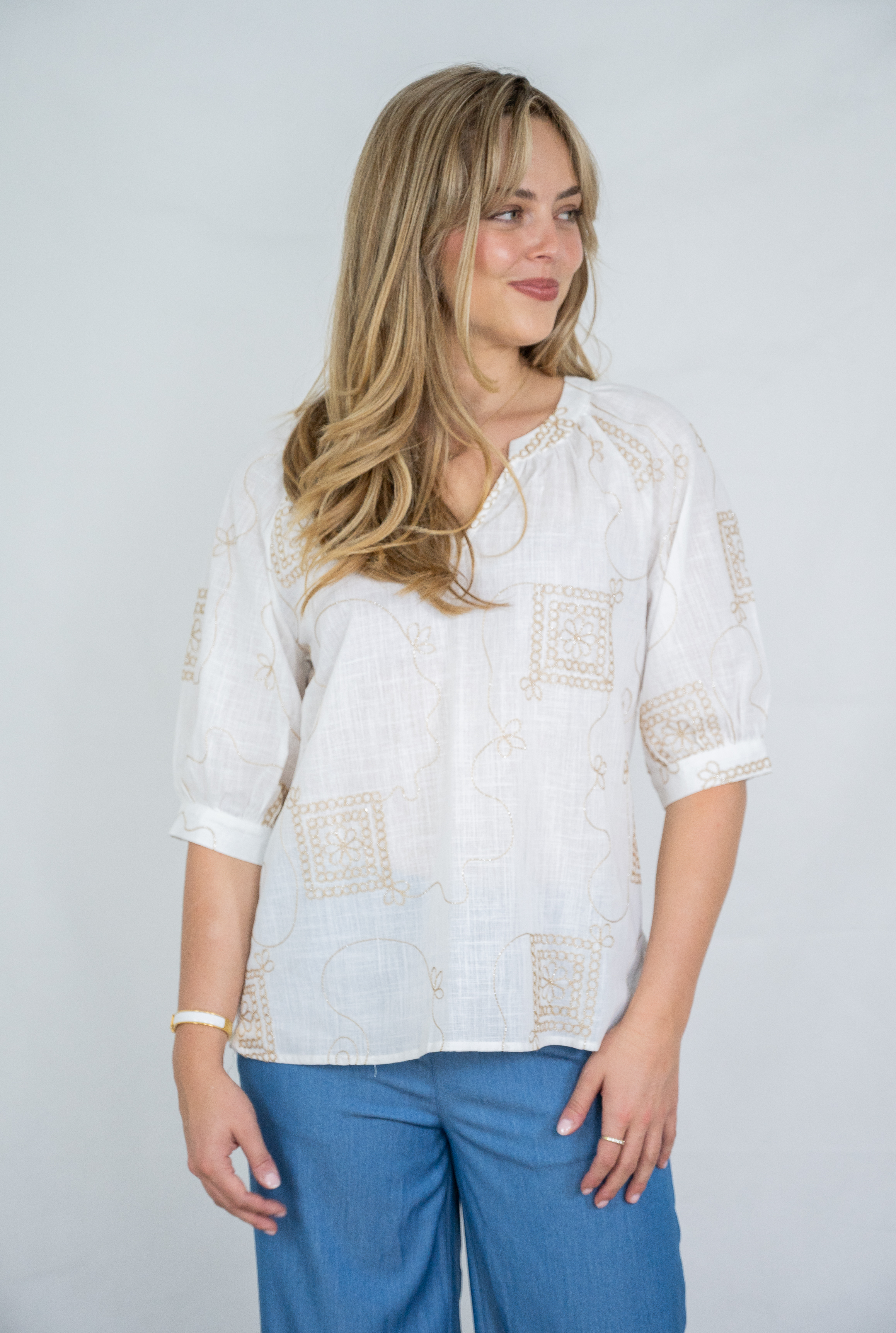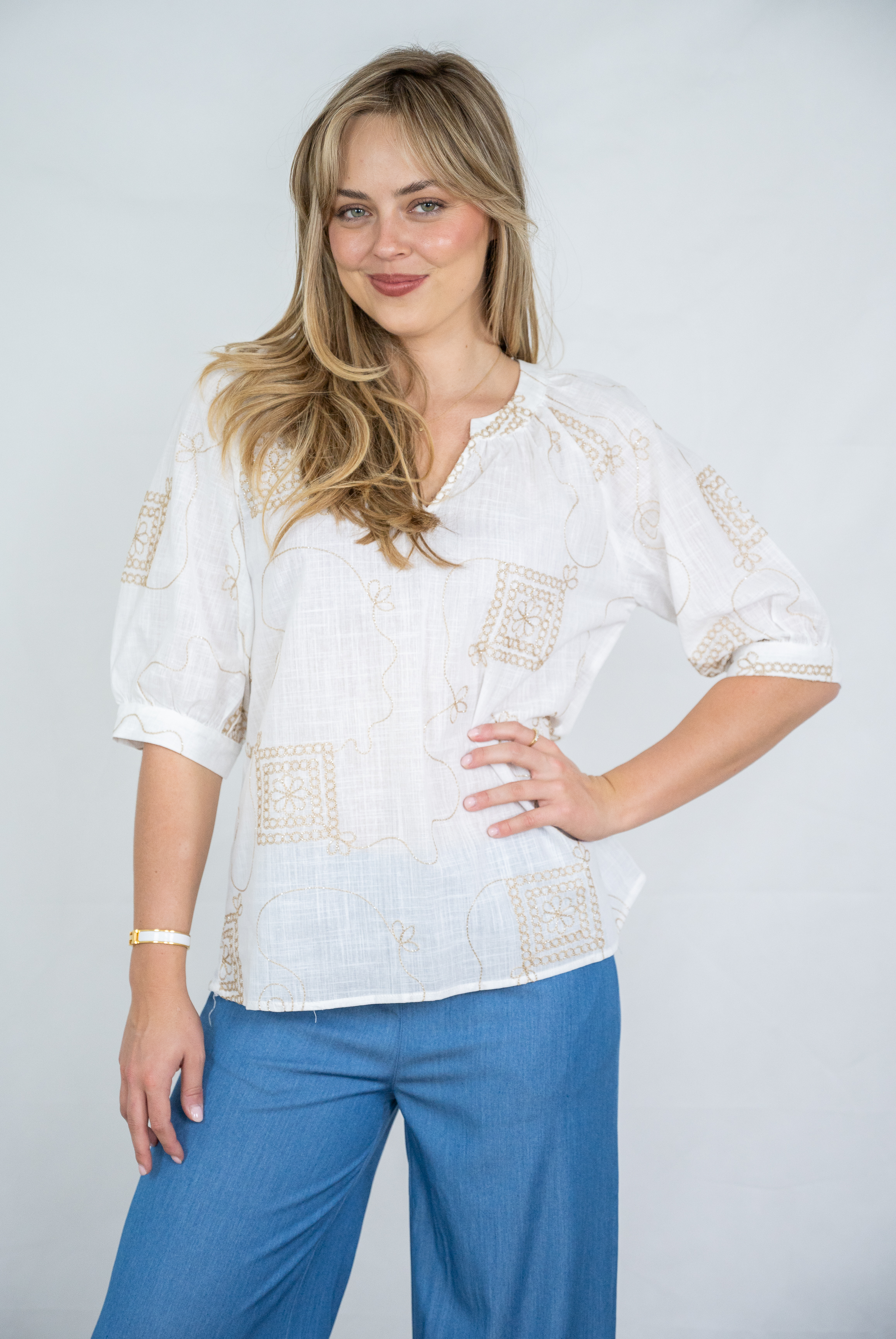 32987A WH COTTON EMB COTTON V/N TOP size 8 – 18