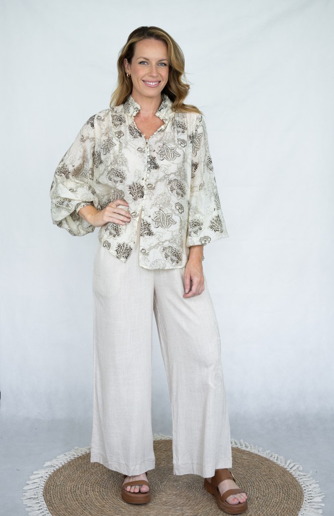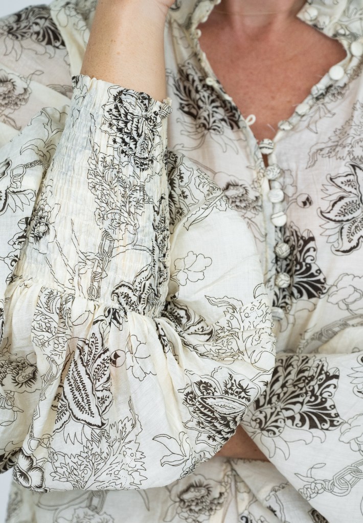 33717 CR VISCOSE/POLY FLORAL PRT BALLON SLV HIGH NK SHIRT SIZES: 8-18