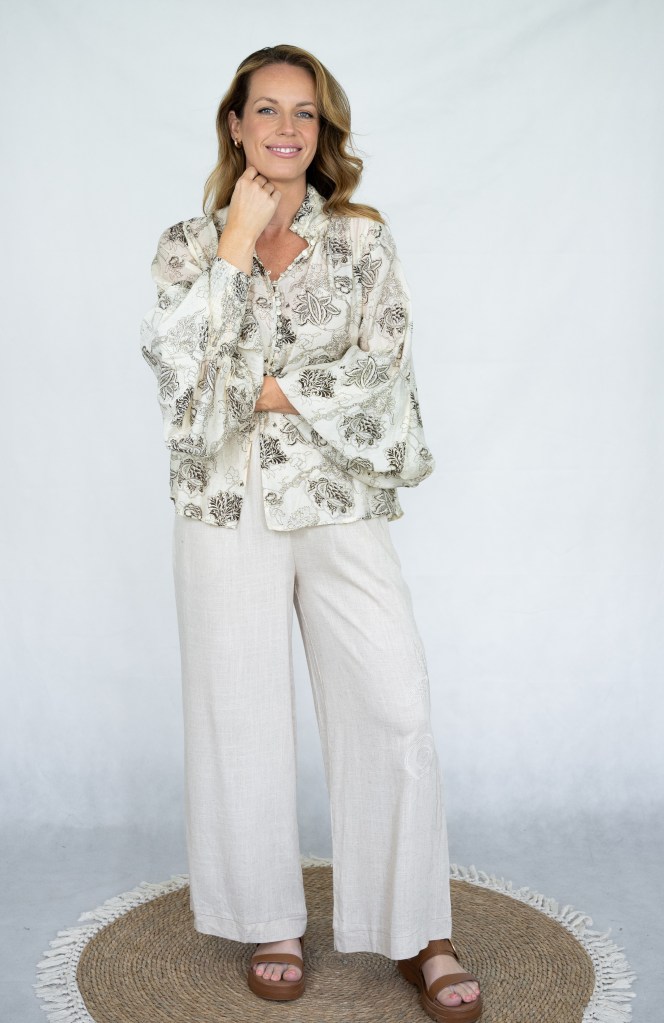 32992C TE LINEN/POLY ABSTRACT PRT BLOUSE SIZES: 8-18