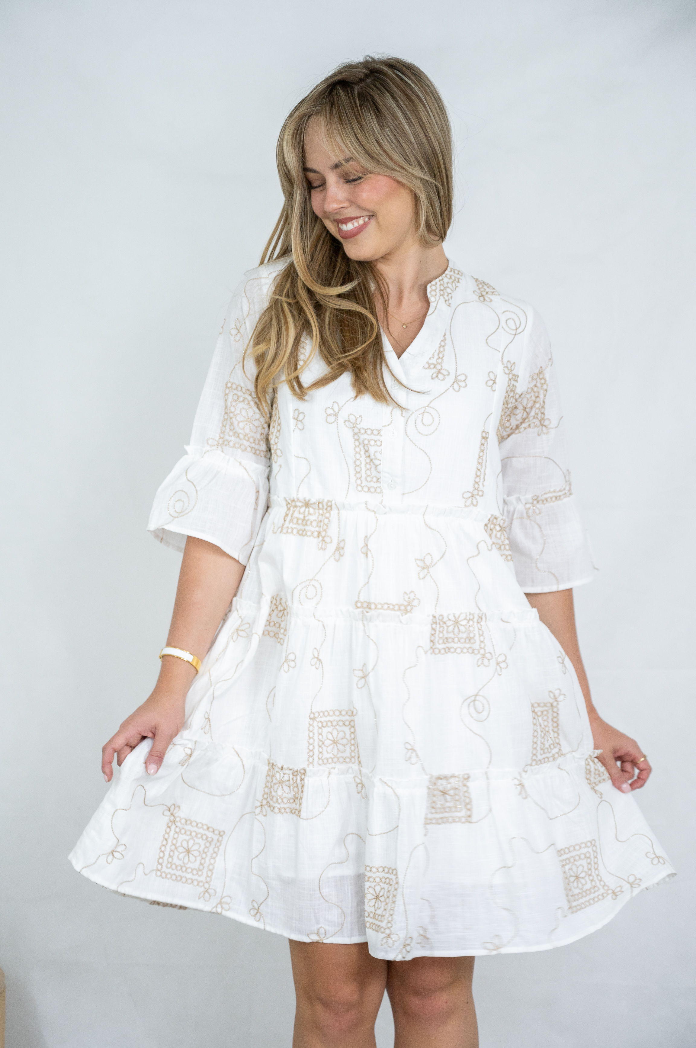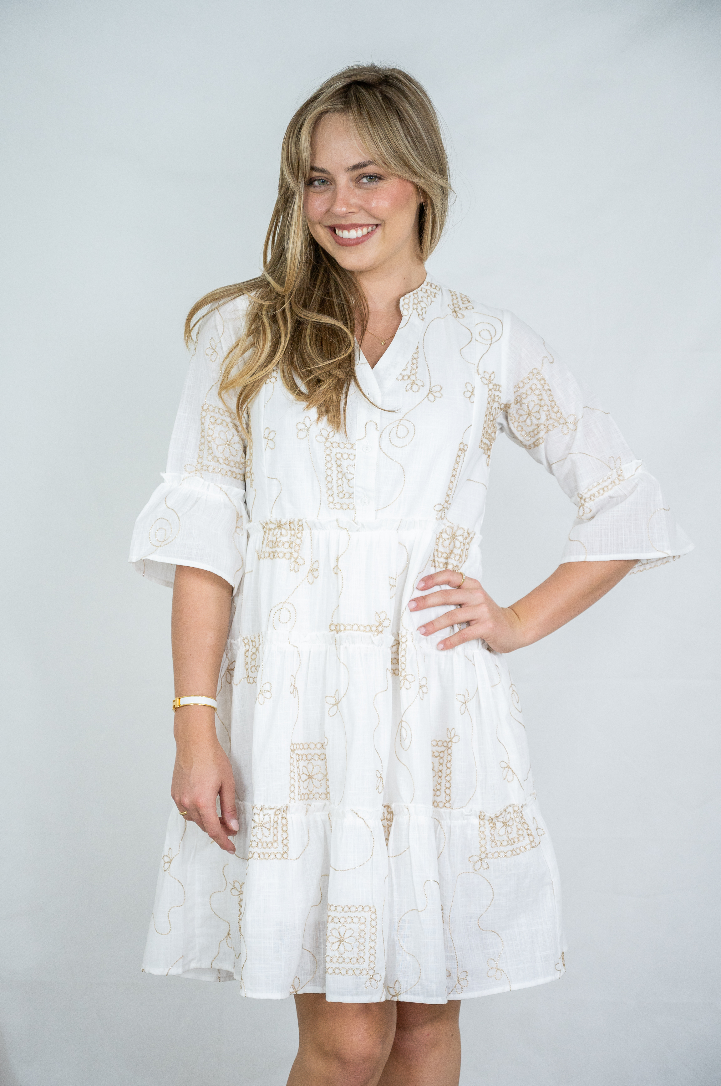 38893C WH COTTON EMB COTTON TIER DRESS size 8 – 18