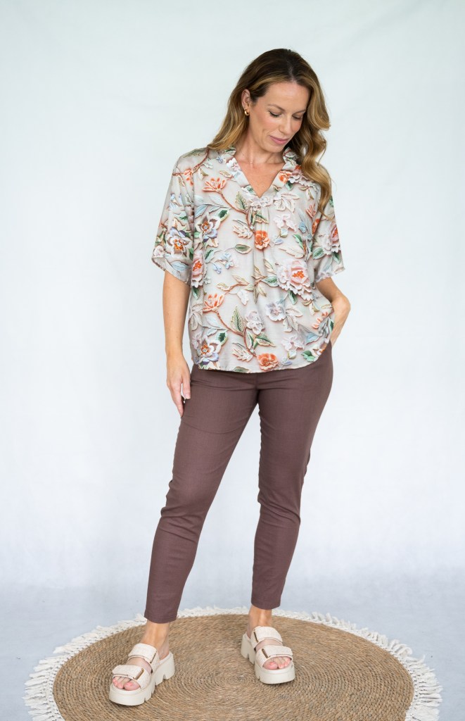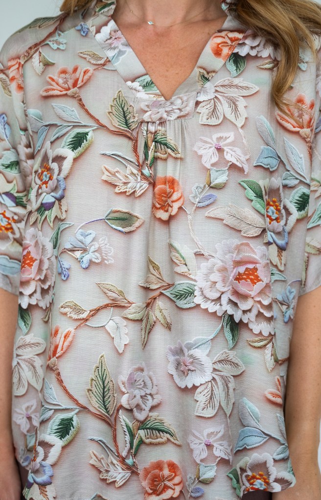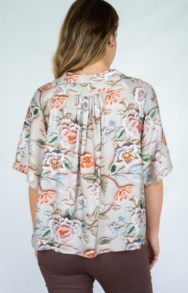 52038 MO LINEN VISCOSE FLORAL PRT RAGLAN SLV BOXED TOP SIZES: S/M-L/XL